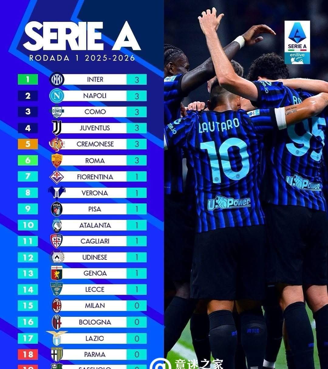 【SerieA】2025-26意甲1/38轮赛果及积分榜、射手榜 2025-