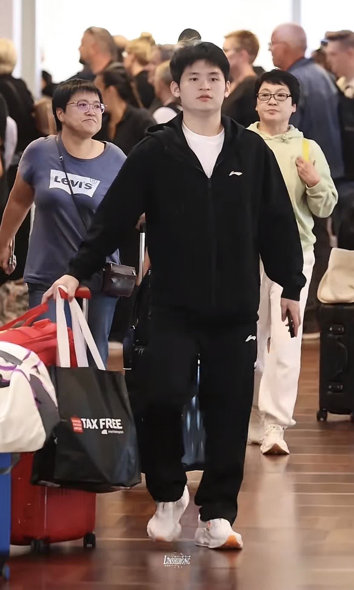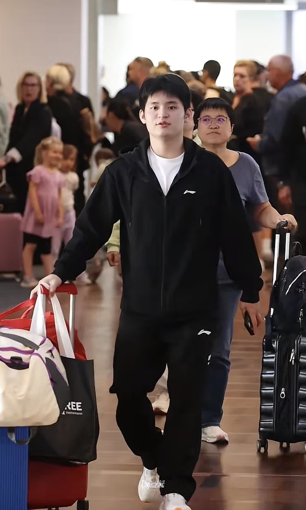 林诗栋回国了。依然推着红箱子。黑色袋子可能是买的纪念品。 虽然惜败,但打的精彩