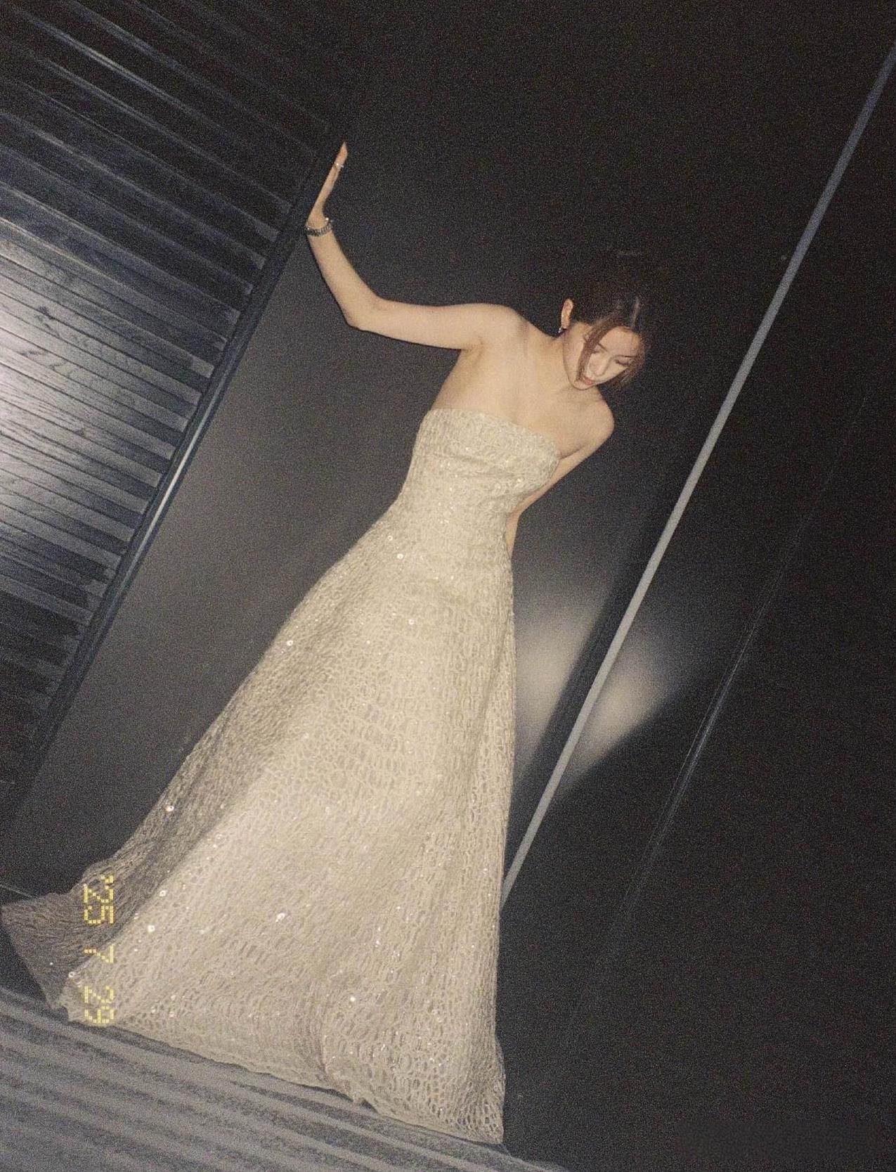 欧阳娜娜为了防走光,性感长裙礼服下,居然还穿了一条睡裤,这样即使坐着躺着,也不怕