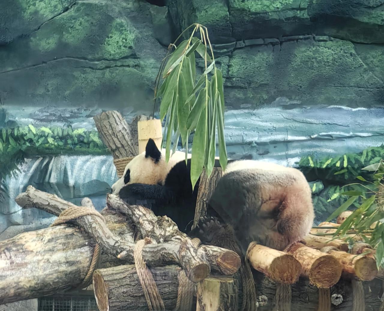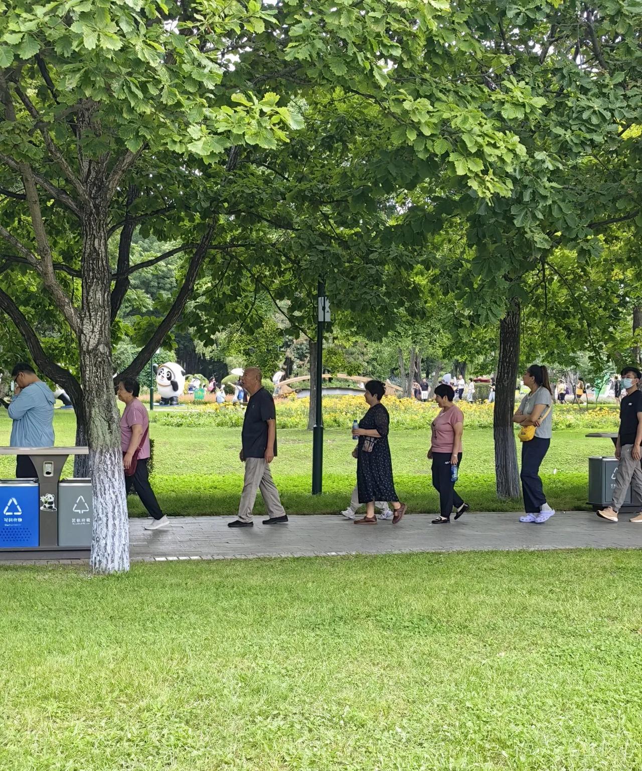 昨天,领着老妈去太阳岛游览,观风景,看国宝大熊猫。老妈很开心,一大早就找出几件衣服,一件一件在身上比划,她拿不准穿哪件衣服拍照更漂亮。 老妈是人老心不老,80岁的老妇,18岁的少女心。喜欢新鲜事物,喜欢溜达,喜欢照相。 儿媳说别穿多,天气很热。老妈穿了这件透气又大方的衣服,衣服素雅有档次,前不久新买的。 自家车,儿子开车,老妈很喜欢坐车。什么车都喜欢坐。只要是出去溜达,坐公交乘地铁,她也一样开心。 观赏大熊猫的人,人山人海,排出了长长的队伍。一拔人被放进熊猫馆里观看五分钟,五分钟后这拔人离开,再放另一拔人进馆。 在烈日下排了一个多小时,终于排到我们了。81岁的老妈一直挤在我们前面,那腿脚快速,特别是进了馆,见缝插针,寻找最有力的位置观看大熊猫。 我们进馆时,熊猫有点累了,躺着休息呢。只看到了它的后背和屁股,给老妈急够呛。4分钟过后,在最后的一分钟里,熊猫起来了。我们终于看到了熊猫的真容。 老妈特别高兴,脸上挂满笑容。回来后,她总说没溜达够,还想去太阳岛看花,看风景。 闲时,我带她再去。很方便,我家离太阳岛只有几站地! #秋日生活打卡季#