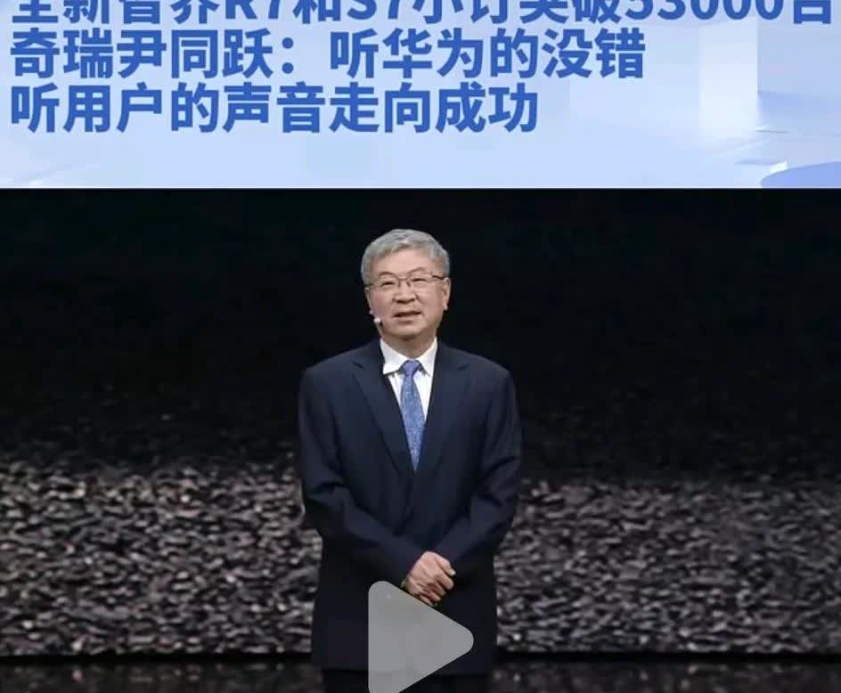 全新智界R7和S7小订突破53000台。 在发布会上,奇瑞尹同跃表示:听华为的