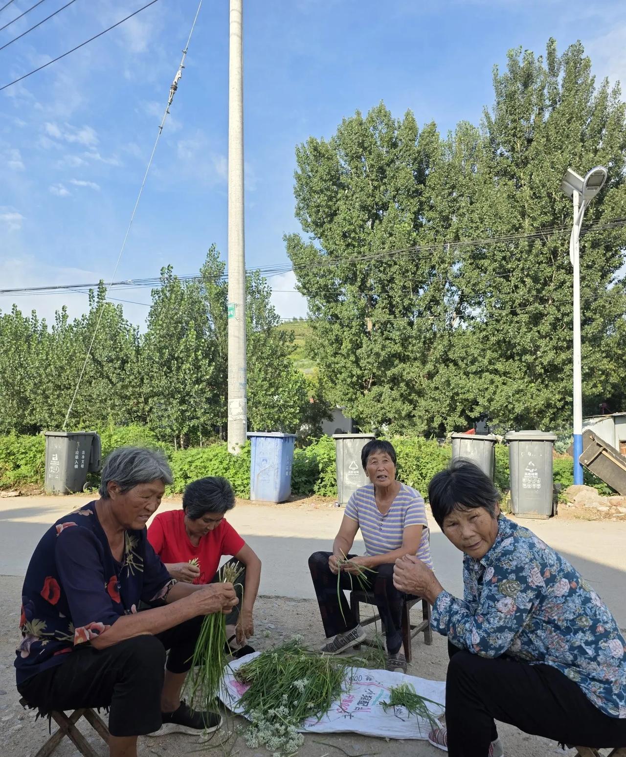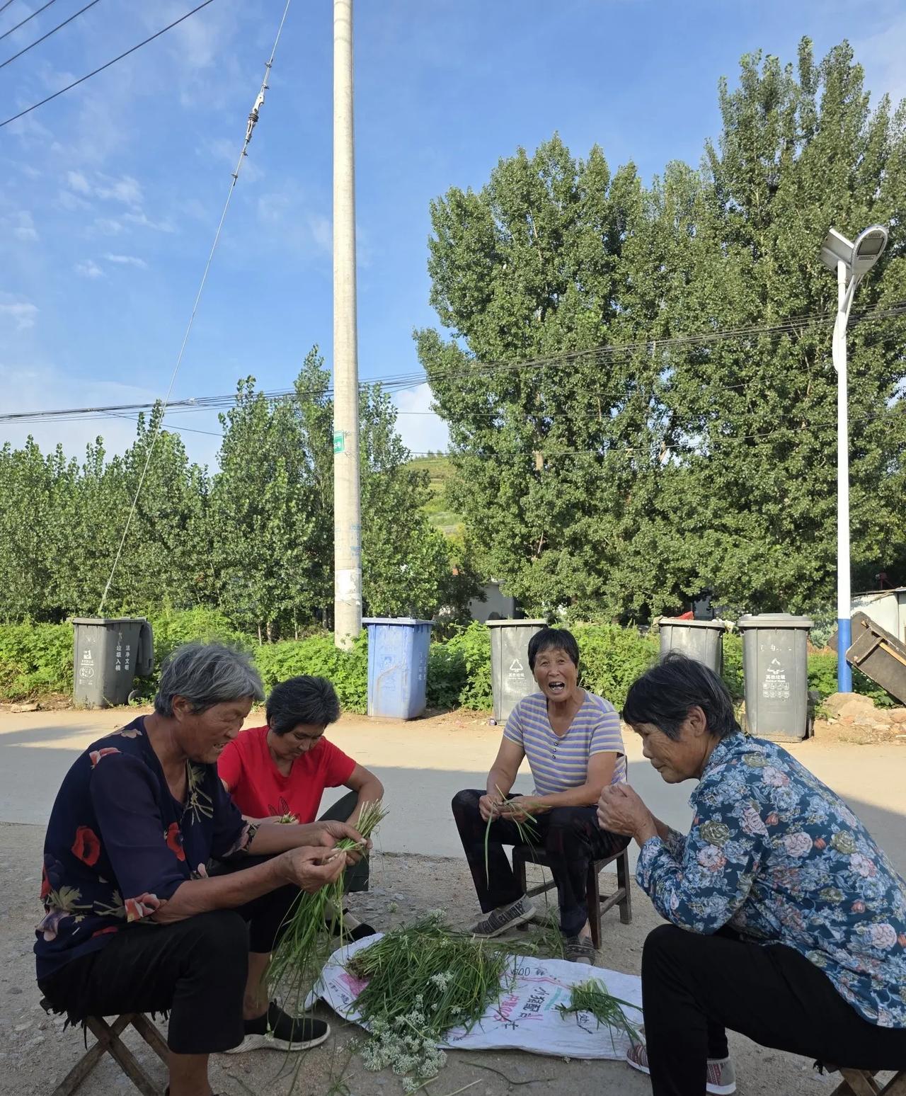 8月26日下午,沂蒙山腹地一个山村的街头即景…… 下午四点,大姑提出一桶刚从菜园里拔回来的萝卜苗,二嫂帮她捋一捋、摘一摘,她说晚上用开水烫烫,清炒辣椒。这是纯粹的绿色无公害蔬菜。大姑问我要不要,我说不要,家里还有菜; 四点二十,一个婶子看到我过去了,从家里搬出茶具,提来开水,开始泡茶。二十几个人坐在那里,谁想喝就喝; 四点半,电影放映员开始挂幕布,他告诉我今晚放映《中国营长》,抗日故事片,建议我晚上过来看看。这个放映员是我们村的,比我小三岁,按辈份我叫他叔。他是镇文化站安排的放映员,每个月在周边几个村巡回放映几次,每月一千块劳务费,已经干了八年; 五点,一个嫂子抱过来一堆韭菜,几个人涌过去帮她摘。她说今晚要烙馅饼,韭菜和不老瓜做馅儿,其他几个人给她介绍经验,加点什么调料更好吃; 五点半,在镇里超市上班的一个妹妹回到村里,在街头摆摊卖苍蝇药蚊子药;一个叔去菜园锄草回来,停下车跟我聊天…… 村居,生活模式虽然千篇一律,但每天内容各不相同。