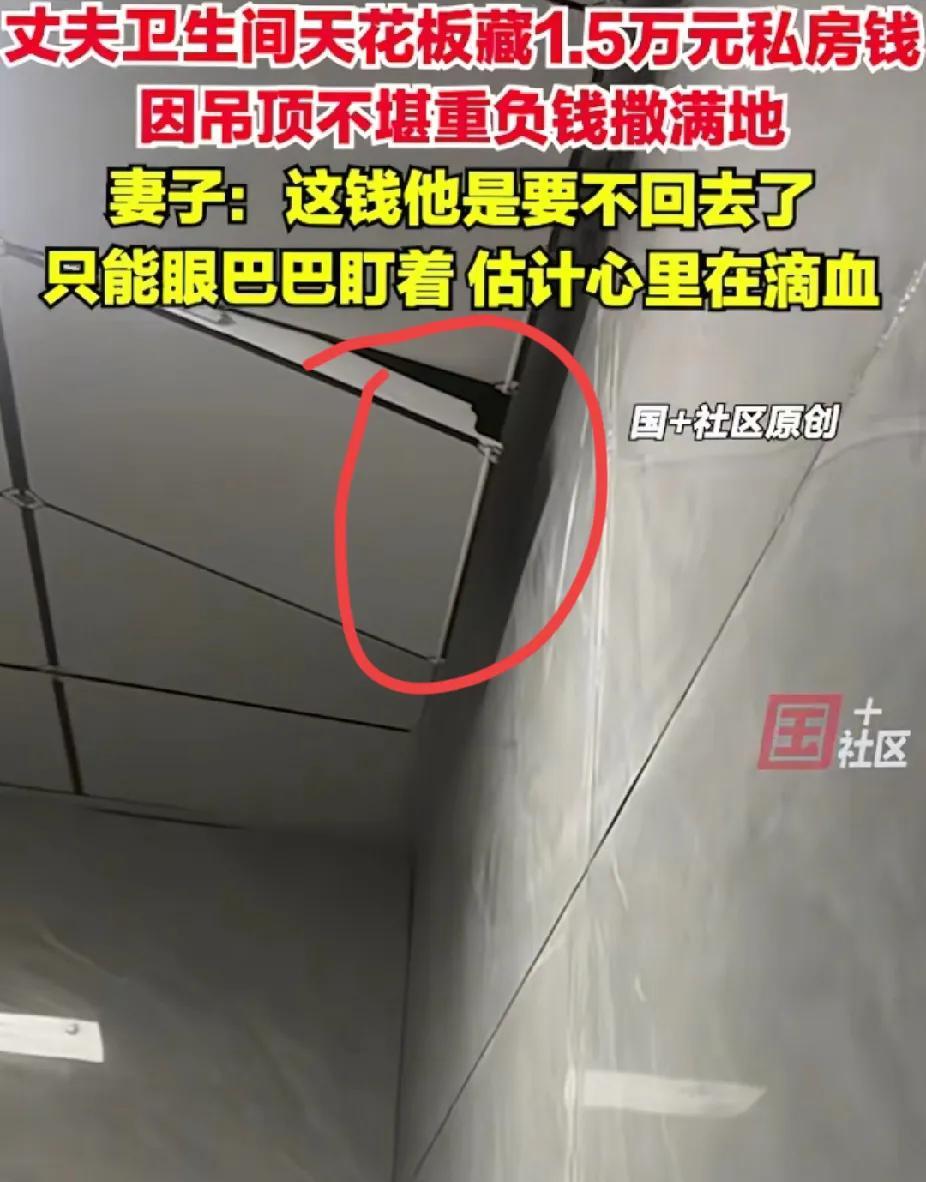 “笑不活了!”山东临沂,男子在卫生间天花板藏15000元私房钱。不料,吊顶不堪重