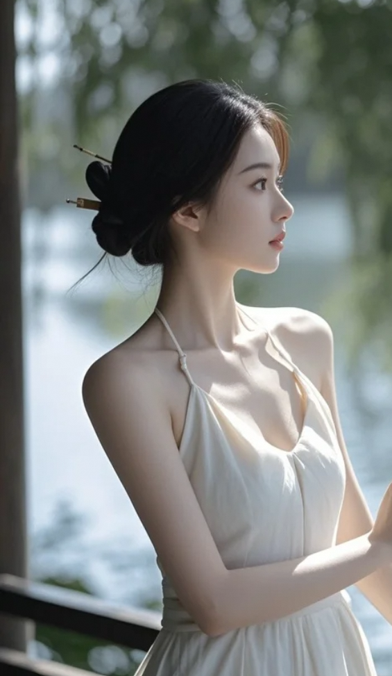 她站在湖边,不是风景,而是心动的理由