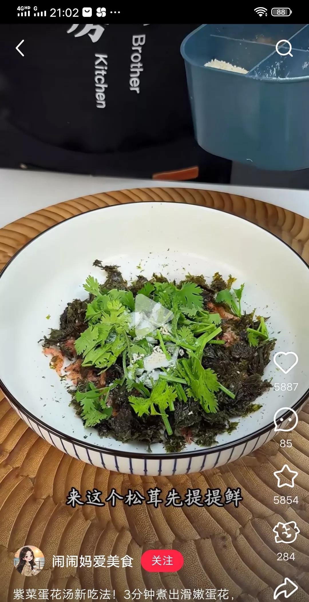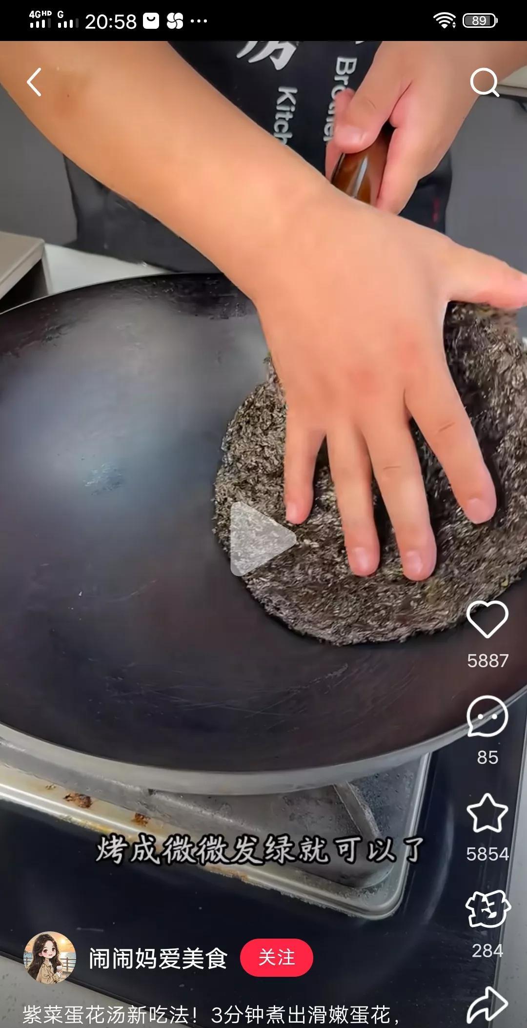 紫菜蛋花汤制作方法,老婆也不传授 铁锅里不加水不加油,加上紫菜快速在锅里焙干成发