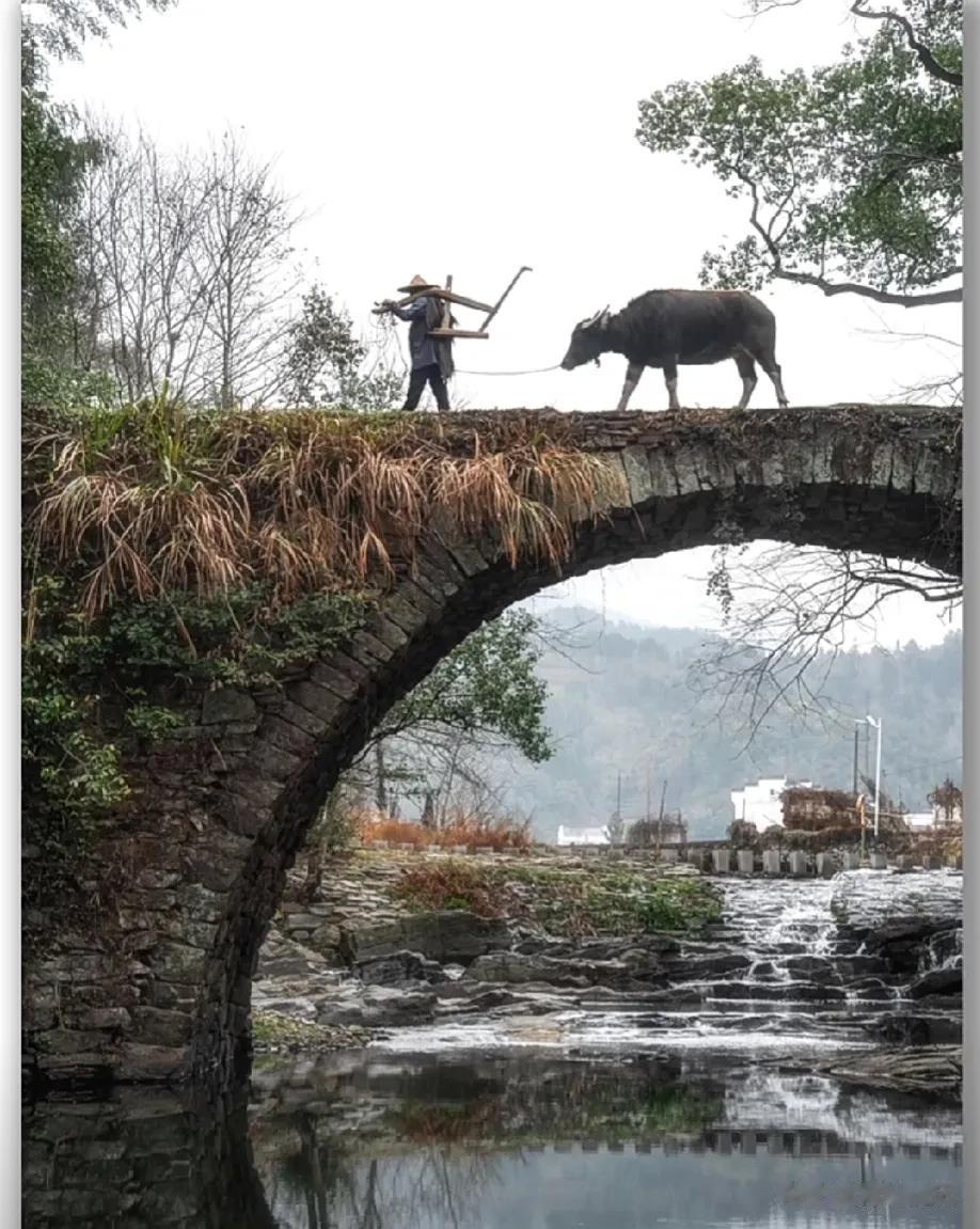 一小伙子分享了他在婺源拍古桥,花40元请大爷牵牛走了半小时的说说火了……这40块