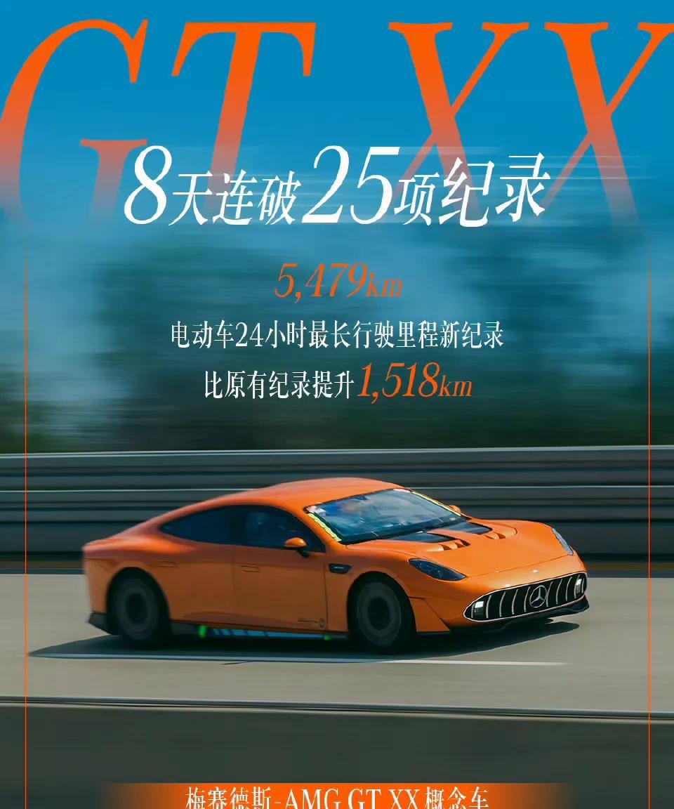 奔驰概念车AMGGTXX电动车连续破下惊人的记录(比如24小时高环耐力跑出5