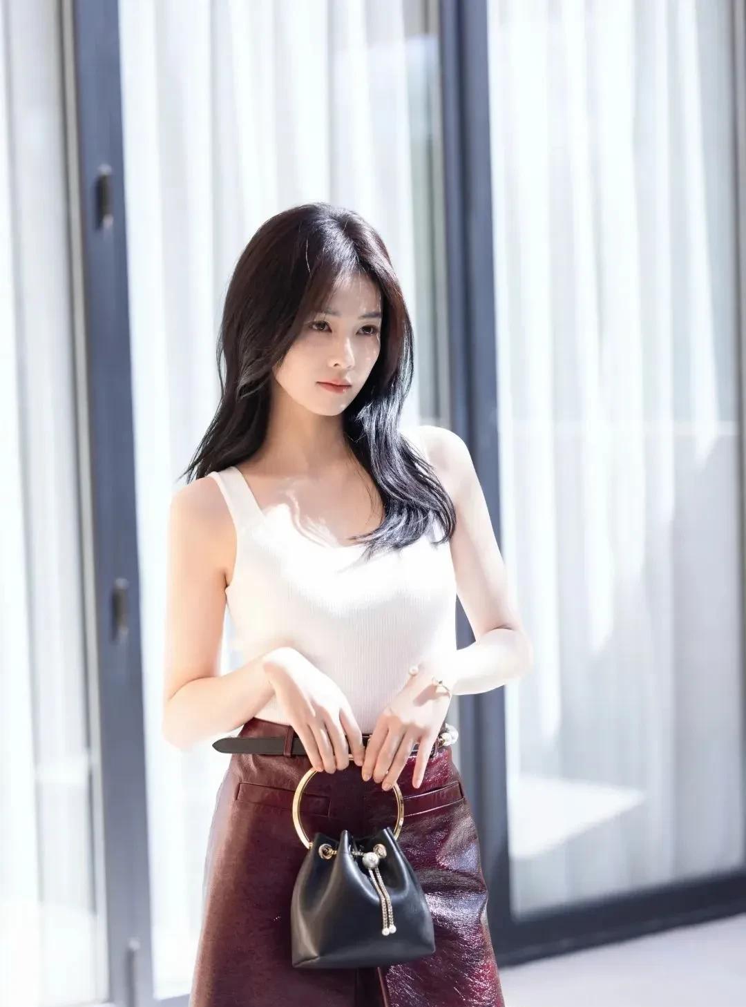 白鹿白背心配红皮裙,曲线超绝,转身回眸带笑,发丝飘动感拉满,这身材谁看了不迷糊!