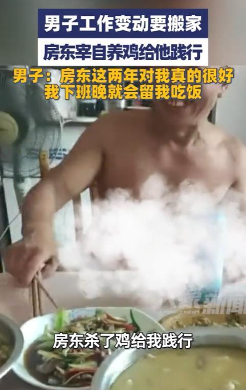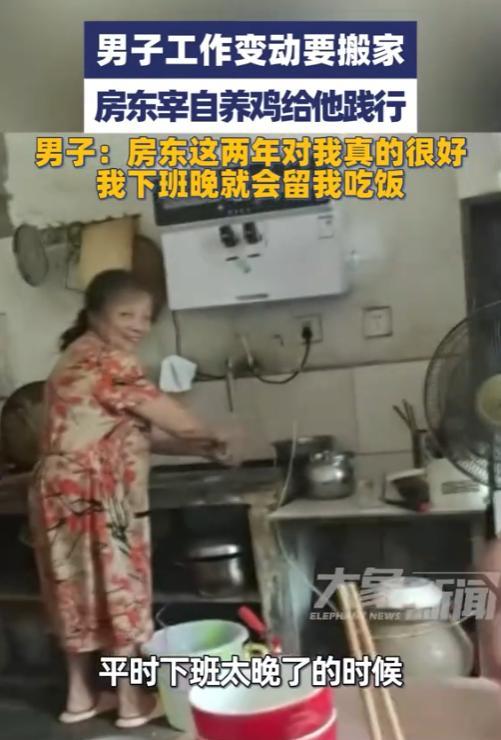 “中国好房东!”近日,四川成都,一男子租了一老两口的房子2年,因为工作变动要搬家,没想到,房东大爷亲自宰自养鸡给男子践行!男子表示:房东这2年对我真的很好,下班很晚就会留我吃饭!网友:上哪里去找这么好的房东! 这名男子,两年前在成都打拼时,租了一对老两口的房子,这老两口人特别实在,平时待他就跟自家孩子似的,男子每天上班挺辛苦,有时候加班到很晚才回来,老两口要是还没睡。 看到他回来,总会热情地招呼他,让他别忙活做饭了,就在家里一起吃,时间长了,男子在这个出租屋里,也感受到了家的温暖。 这两年,男子和老两口相处得特别融洽,从没因为租房的事儿红过脸,可前不久,男子因为工作有了变动,得搬到别的地方去,没办法再继续租老两口的房子了。 他心里挺舍不得的,纠结了好几天,才跟老两口说要搬家的事儿,本以为老两口也就简单叮嘱几句,没想到房东大爷听了之后,没说别的,转身就去了自家院子里。 原来大爷在院子里养了几只鸡,他特意挑了一只壮实的,亲手给宰了,说要给男子做顿好吃的,算是给他践行,炖好的鸡肉端上桌,香气扑鼻,男子看着桌上的菜,又看着一脸慈祥的老两口,心里特别感动。 他说这两年,老两口对他是真的好,不仅从不多要房租,还总想着他,有时候他生病了,老两口还会帮他煮药、送水果,比亲人还贴心,后来男子把这事儿分享到网上,网友们都炸了。 有人说“这样的好房东打着灯笼都难找”,还有人羡慕地说“我咋就没碰到这么好的房东呢”,评论里全是羡慕和称赞的话,大家都说,老两口心善,男子懂得感恩,看着就让人心里暖暖的。 信息来源:《男子工作变动要搬家,房东宰自养鸡给他践行,男子:房东这两年对我真的很好,我下班晚就会留我吃饭》大象新闻