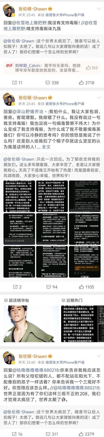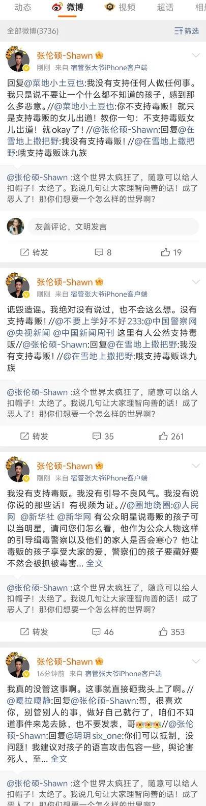 张伦硕太癫狂,连发19条微博怼网友。 他的意思还是要继续为黄奕的女儿发声。 他认