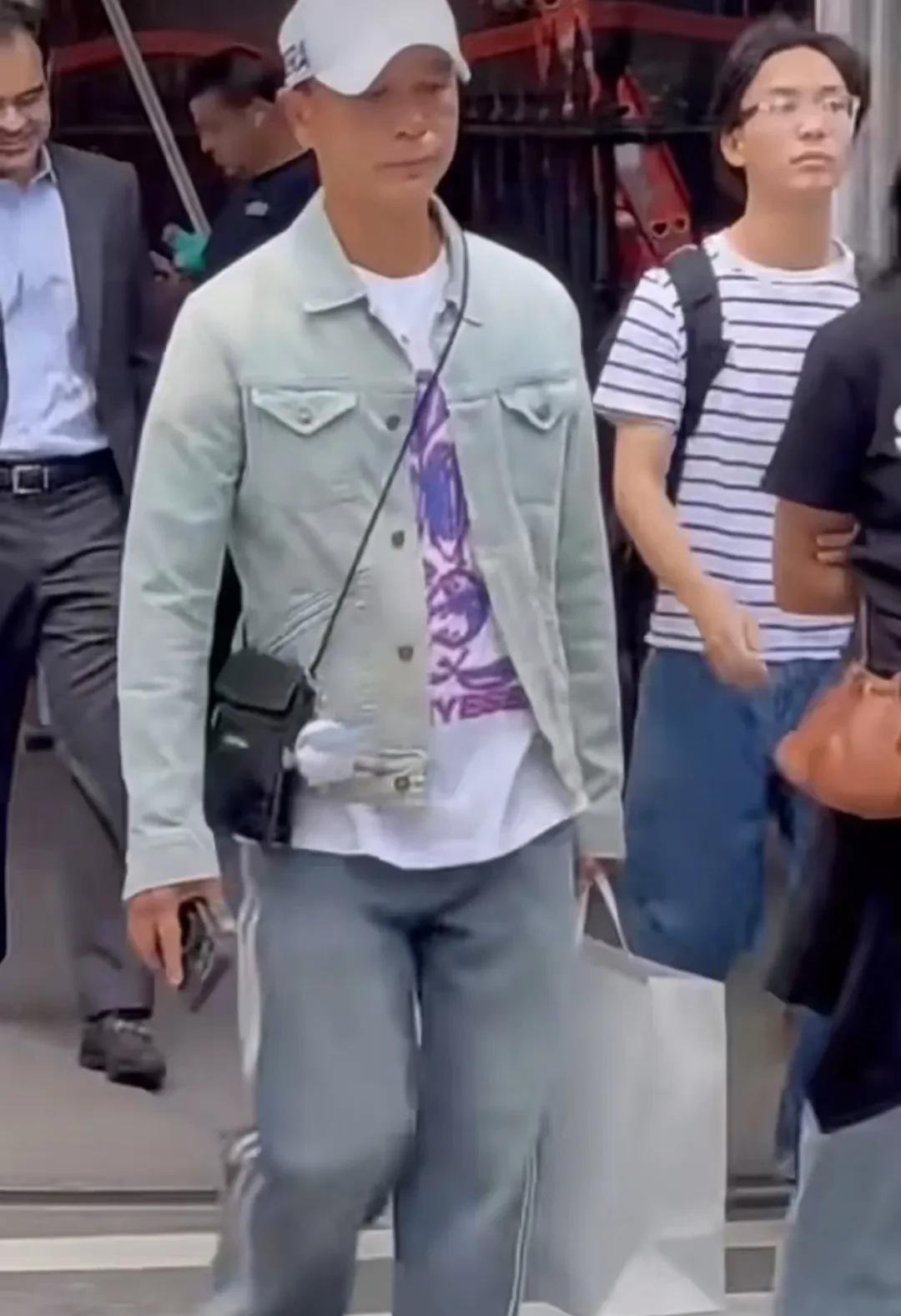 李克勤夫妻俩现身美国,送孩子去上书。李克勤牛仔衣运动裤,带着鸭舌帽,身材不胖不瘦