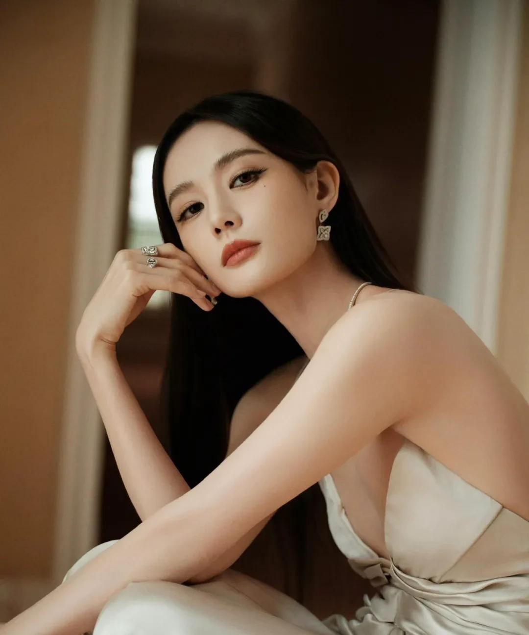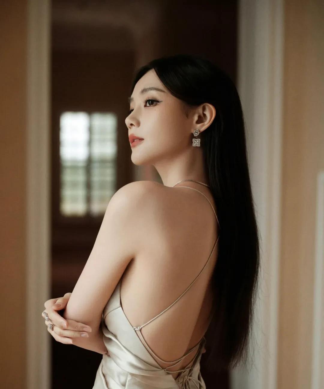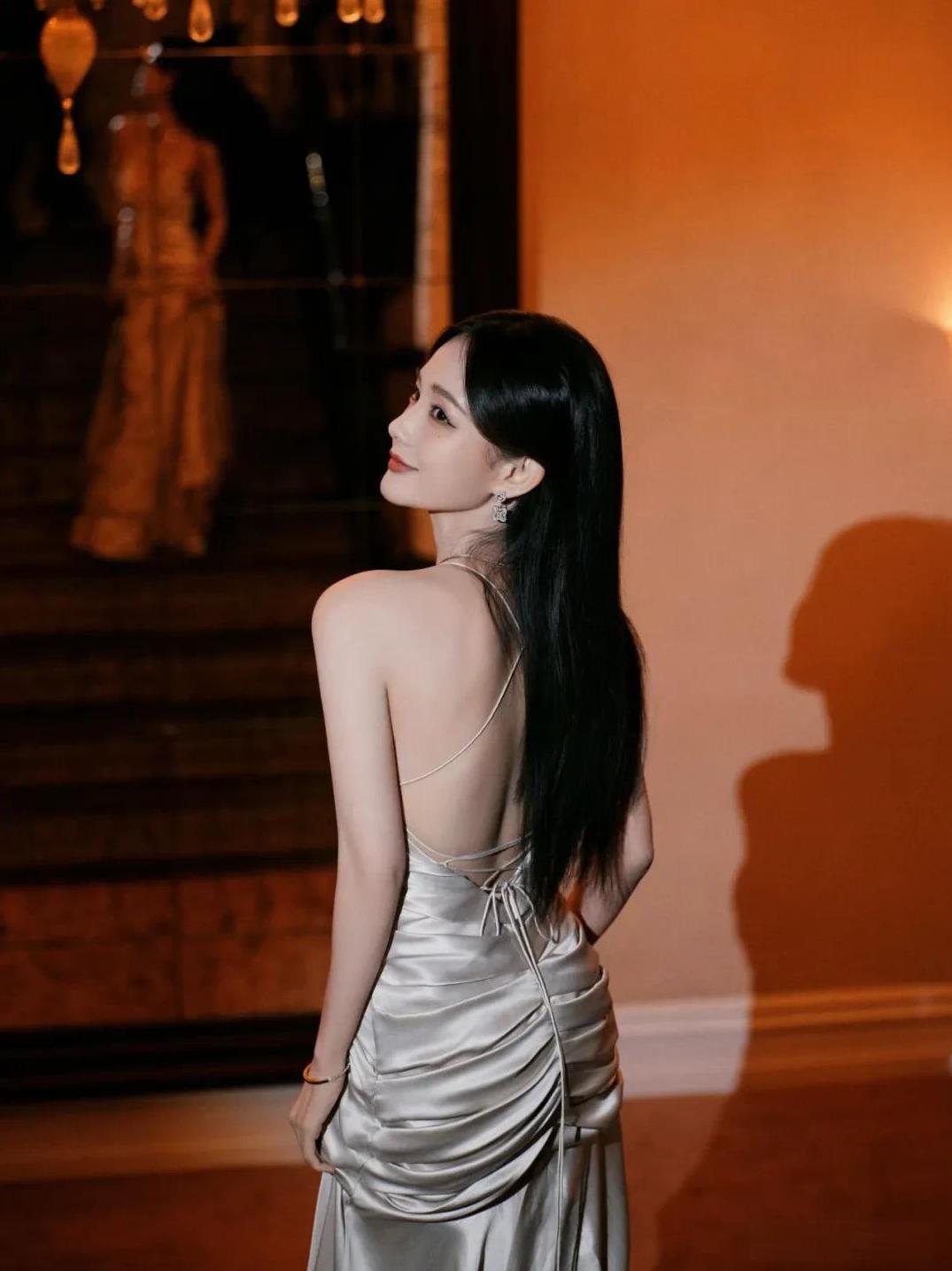 李一桐穿缎面吊带裙杀疯了!直角肩+美背,皮肤白到发光,眼神勾人,这身材直接碾压全