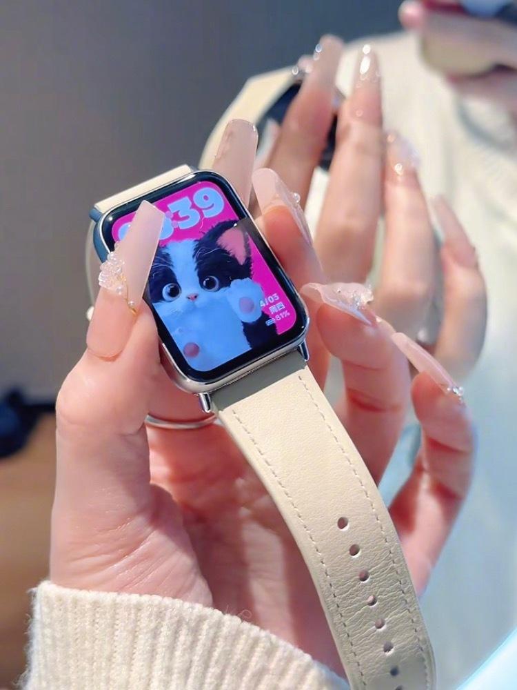 乳白色的表带奶呼呼的,屏幕也比经典的款式大了一圈[good]续航嘎嘎能打,充满电两三天都不怎么掉电!✌️