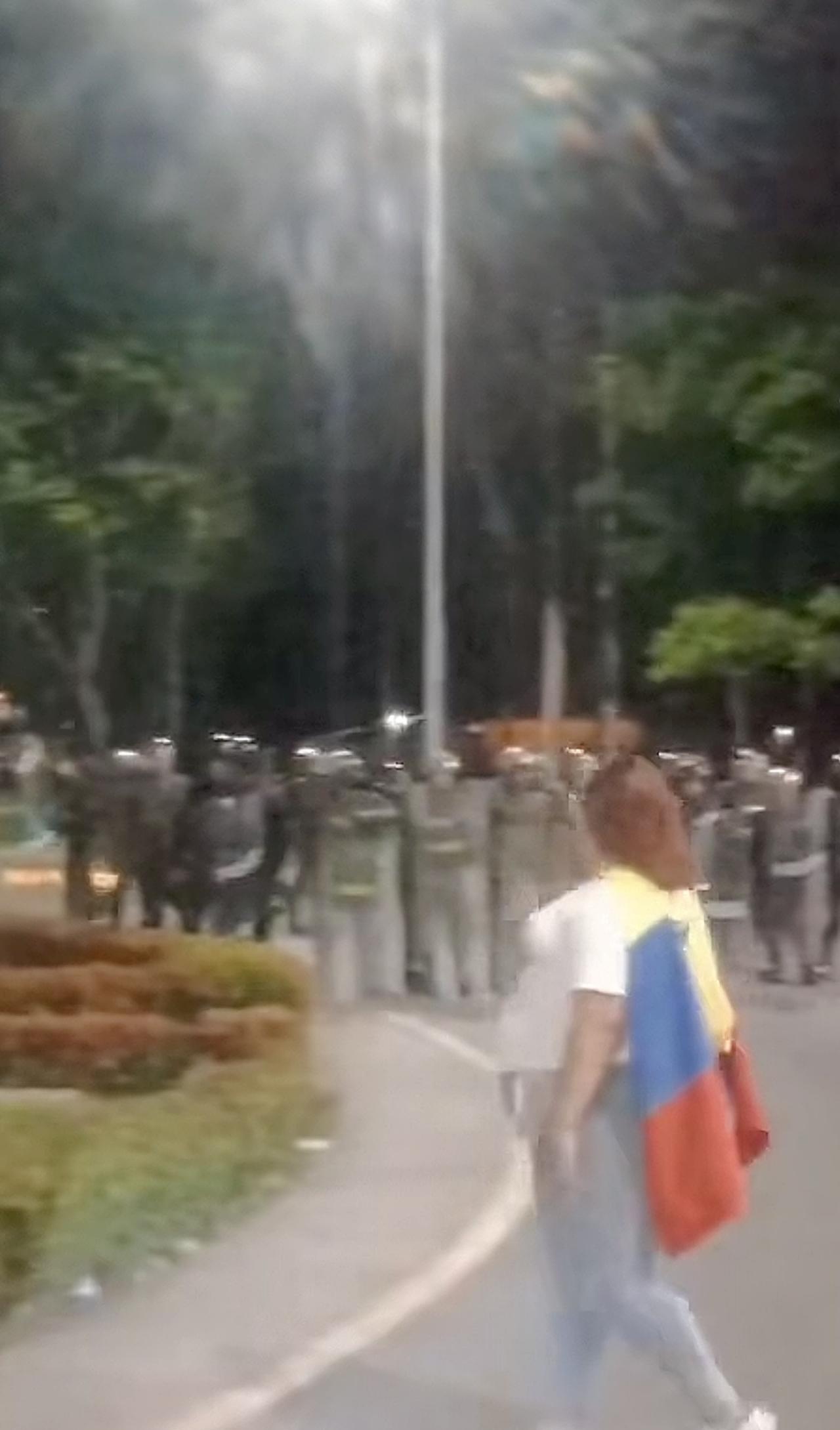 美国大兵压境,还没动手,委内瑞拉的天就开始变了,反对派与无数民众己经迫不及待动手,将多处“马杜罗”宣传海报直接拆除,甚至进行踩踏,有的遭到放火燃烧,他们与军警对峙,他们在街上放烟花庆祝美军的到来。