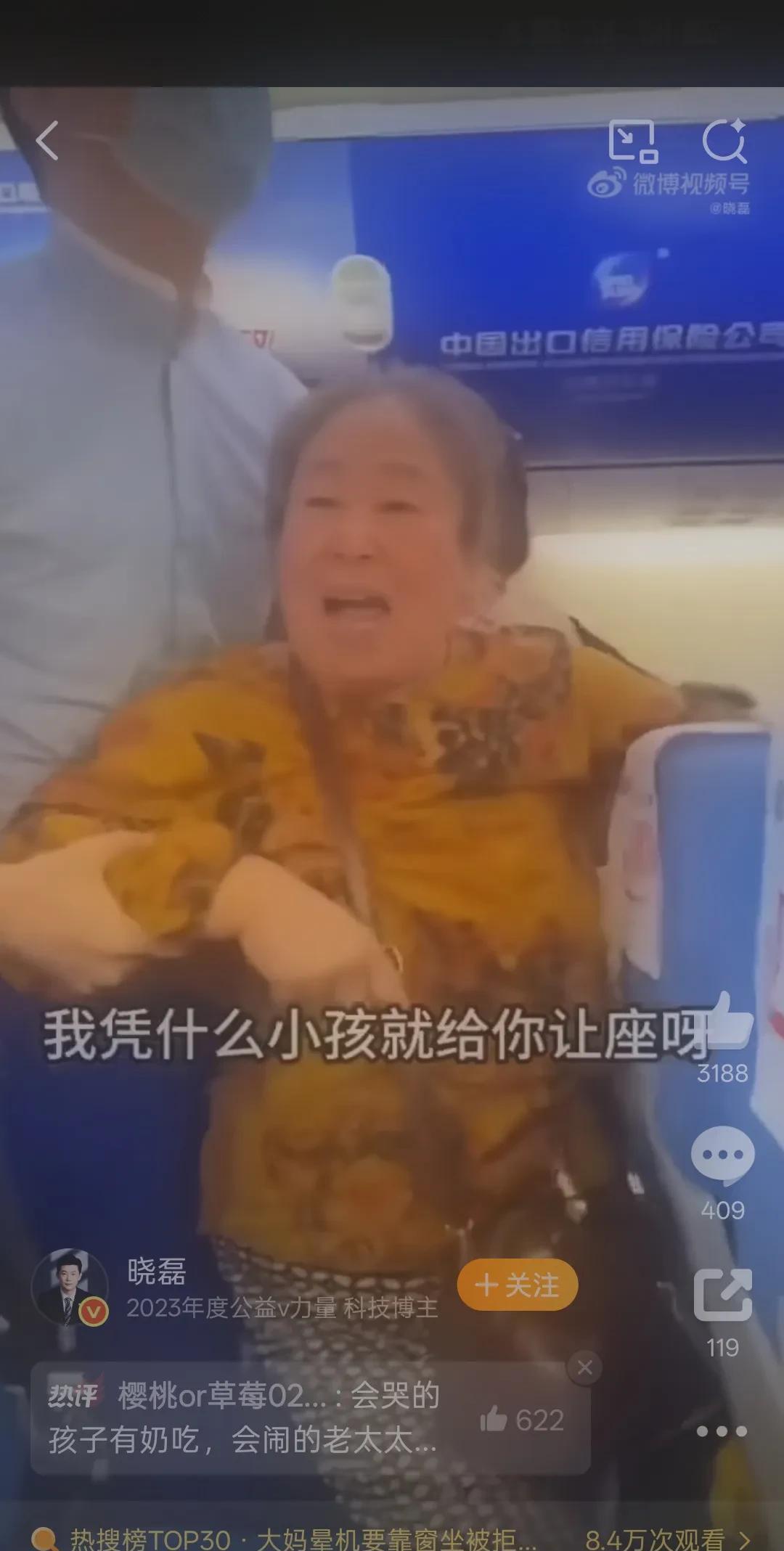 #大妈晕机要靠窗坐被拒后大骂#民航客机服务,不能因为会闹,就要改变规矩,让公平让