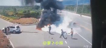 又刷到这段视频,再看仍然触目惊心。 这起交通事故疑似发生在去年的内蒙古呼和浩特,前面白色SUV减速右拐,看不清打了转向没有,后方驶来一辆摩托车,速度太快了,刹车减速或转向避让都来不及了,连人带摩托车马失前蹄硬生生怼上了白色SUV,摩托车瞬间解体、汽油泄漏爆燃,熊熊大火瞬间吞噬了一切。 后来路人灭掉大火,把人拽出来了,但是感觉大概率是无了……太可怕了,十次事故九次快。 大家说说白色SUV有责任么? (交通安全警示教育,不涉及时政及时效) #惊不惊喜意不意外##汽车##车祸##司机##意不意外#