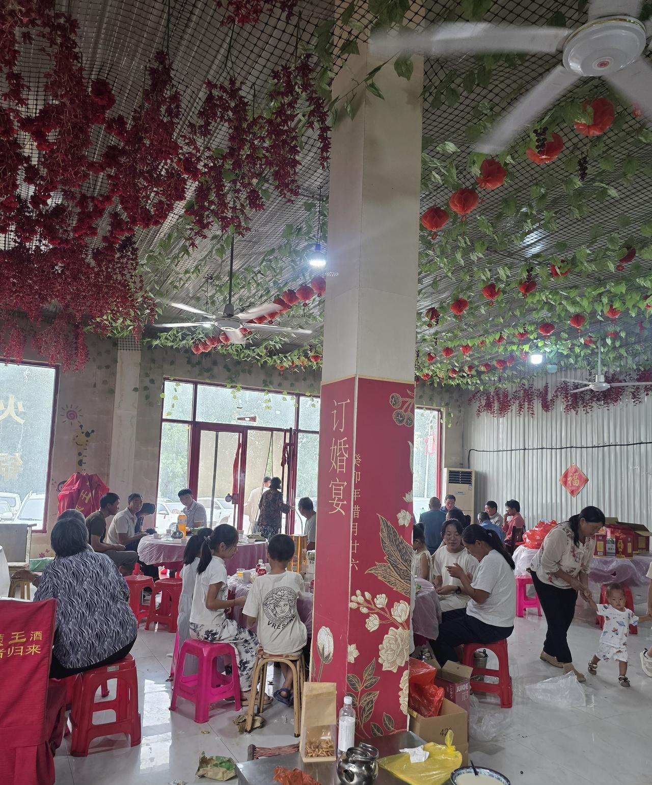 村里的订婚宴…… 中午家里有客人,我在隔壁村饭店订了10个菜,12点来取菜时,正