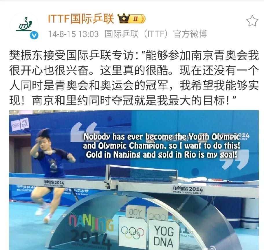 谁的年少不轻狂呢? 17岁时的樊振东,他的目标就是:南京青奥会和里约奥运会同时夺