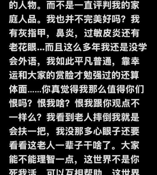 张伦硕最近的举动让人很迷惑,不可思议的操作直接将他推上了舆论的风口浪尖。 刚同情完张维伊,张伦硕又开始替黄奕孩子发声,前者还能理解,毕竟他和张维伊一样,谈的都是娱乐圈里女强男弱的姐弟恋,有感而发很正常。 可莫名地为黄奕女儿说话实在看不懂,关键是他根本没明白网友的意思,大家从来都没想过不让女孩好好活着,只是不希望她做公众人物而已,因为公众人物的影响力不一样,会造成一系列可怕的问题。 而且张伦硕对“株连九族”一词的理解有误,株是杀死的意思,但黄奕女孩活蹦乱跳着呢,只是就业的路子窄了一点而已,这是父母不认真做人的后果。#万能生活指南#