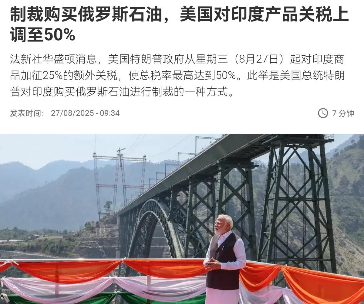 印度的示好,还是结结实实挨了美国狠狠的一巴掌!赶在美国关税生效之前,印度公开对美国示好。8月26日,印度外交秘书唐勇胜表示,尽管印度与四方安全对话机制的另一个成员国——美国关系紧张,但印方仍然高度重视该机制。唐勇胜指出,印方仍在与美国就关税问题进行谈判,并渴望继续扩大与四方安全对话国家的合作。 很显然,印度的这一喊话,这明显是希望通过示好的方式,让美国对即将生效的关税踩刹车。不过,印度的示好,喊话没有等到美国方面任何的回应。外媒称,8月27日起美国对印度商品加征25%的额外关税将正式生效。无疑,美国这一次是铁了心,要通过加税的方式让印度屈服。 而现在最先被冲击的就是印度的出口商,美国是印度的第一大贸易伙伴,印度每年向美国出口超过870亿美元的商品。印度出口商担心订单减少、继而引发停产,企业倒闭。很显然,印度现在的处境非常的尴尬。要对美国强硬,手里面没筹码。 不强硬,对国内又交代不过去。以继续扩大与四方安全对话国家的合作,提醒美国看重印度的价值。但5.7空战,印度的虚实早被戳破。现在这种时刻印度还左右摇摆,一方面只会让美国看见印度确实很虚,另一方面,也会让我们对于印度也不能不多留一个心眼。