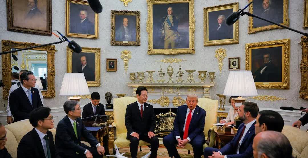 【川普发帖称韩国正在经历“大清洗”,李在明急赴白宫:请在朝鲜建川普大楼】 美韩会晤开场即现惊魂一幕,川普会前突然发声称韩国“像在经历清洗或革命”,吓得李在明在白宫全程坐姿僵硬,用韩语高呼“请您在朝鲜建川普大楼,当半岛和平缔造者”。这场被韩媒称为“高风险低回报”的外交博弈,暴露了韩国夹在中美之间的尴尬处境。 川普的争议帖文直指韩国内政:独检组接连搜查教会、前总统府甚至美军基地,被外界解读为对前总统尹锡悦的“政治清算”。 为讨好川普,李在明抛出惊人提议:在朝鲜建造“川普世界大楼”,让川普通过高尔夫外交实现“历史性和平”。这与其访日前高呼“反日”、如今却密集会晤日本政要的操作如出一辙,被批“外交政策反复无常”。 美国紧逼韩国兑现3500亿美元对美投资承诺,川普更暗示要收回驻韩美军基地土地。李在明一边承诺大韩航空订购百架波音飞机,一边派特使团赴华转交亲笔信,试图在“亲美”与“对华平衡”间走钢丝。 这场“高尔夫外交+投资换安全”的戏码能唱多久?当川普交易的艺术遇上韩国5年任期赌局,历史终将验证,靠讨好强权换来的平衡,终究不过是流沙上的楼阁。