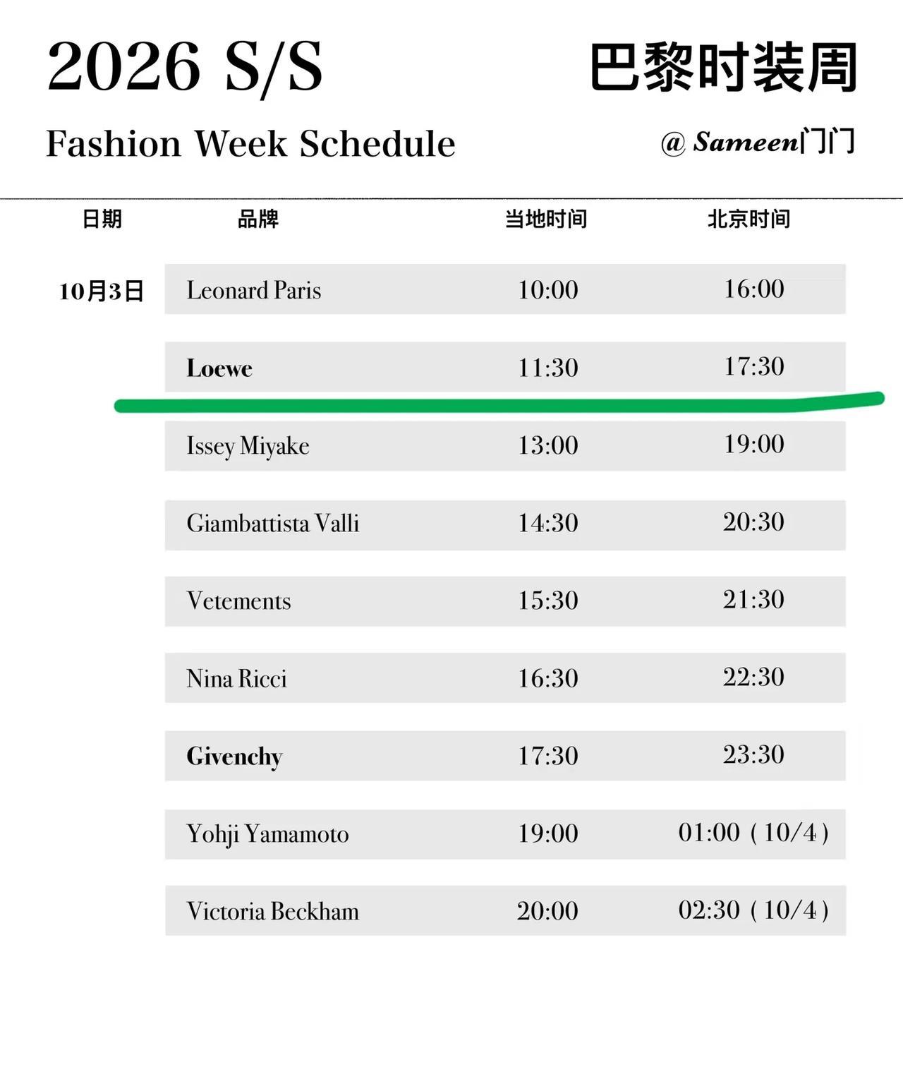 十月是不是也能见到王一博了? 巴黎时装周的时间表来了。 Loewe10月3日1