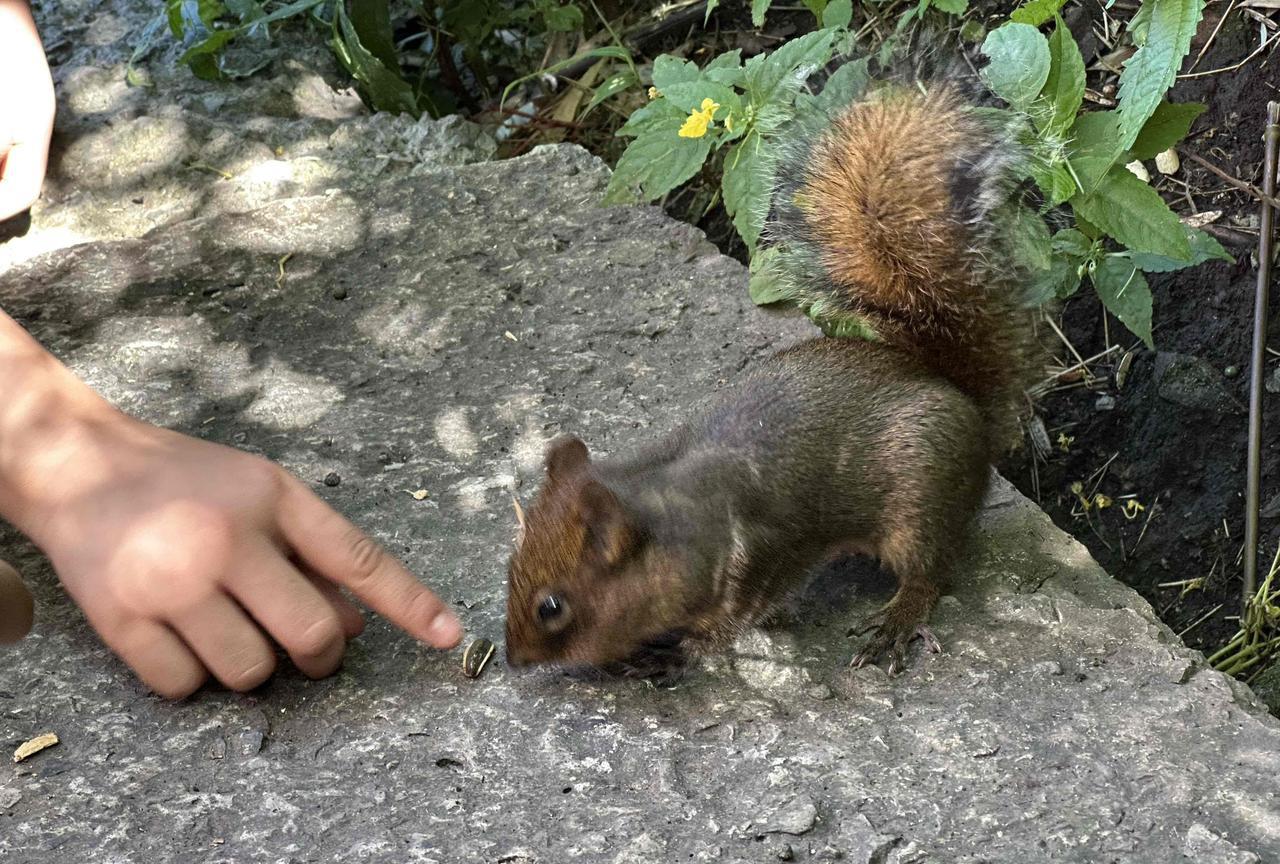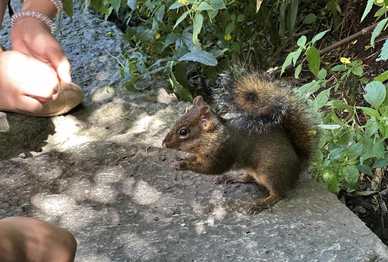 8月27日下午,重庆金佛山的一只小松鼠,吸引了很多小孩子的眼球,大家纷纷投喂!所以,友情提醒,家长带小孩爬金佛山,最好带上一些花生瓜子松果等零食,以防时不时经常偶尔遇到小松鼠哟! 重庆金佛山作为国际知名自然保护区,生态环境保护良好,珍贵稀有植物和动物很多,大家一定要好好珍惜和爱护。 这只小松鼠,经常在金龟朝阳观景平台至悬崖峭壁的栈道的连接处出现,几乎每个路过这里的游客都可以看到这只可可爱爱的小松鼠。 嗯,今天也见到了很多名贵的小鸟,运气真的好极啦!#光线摄影世界曾兰谈天说地# #头号创作者激励计划#