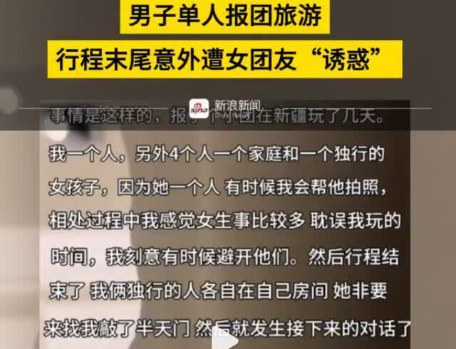 “艳遇还是陷阱?”5月,新疆男子独自报团旅游,女团友深夜敲门、投怀送抱要和男子睡