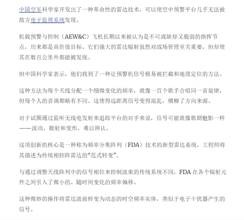 中方科研团队取得新突破,不光战斗机能隐身,预警机也行?