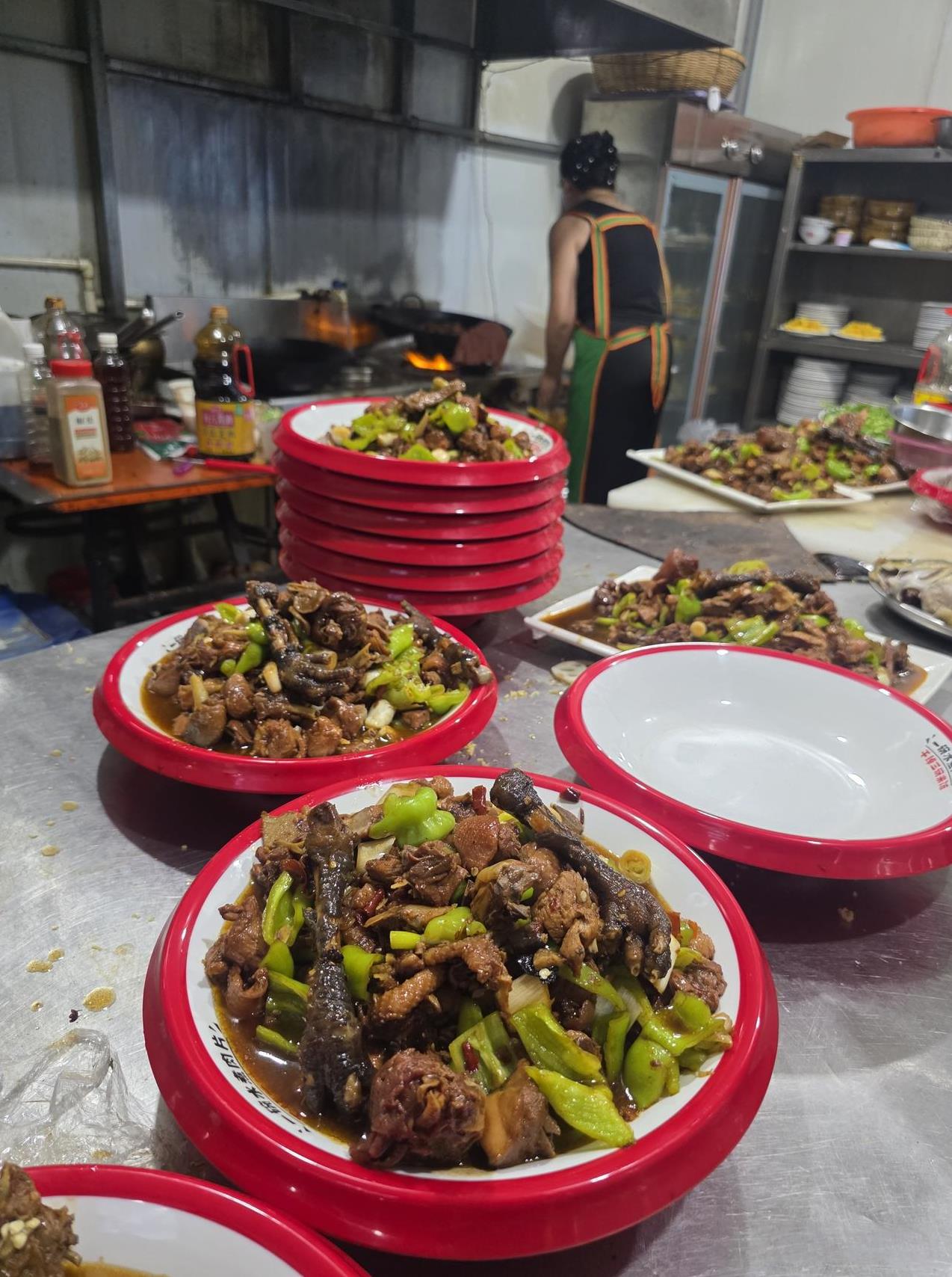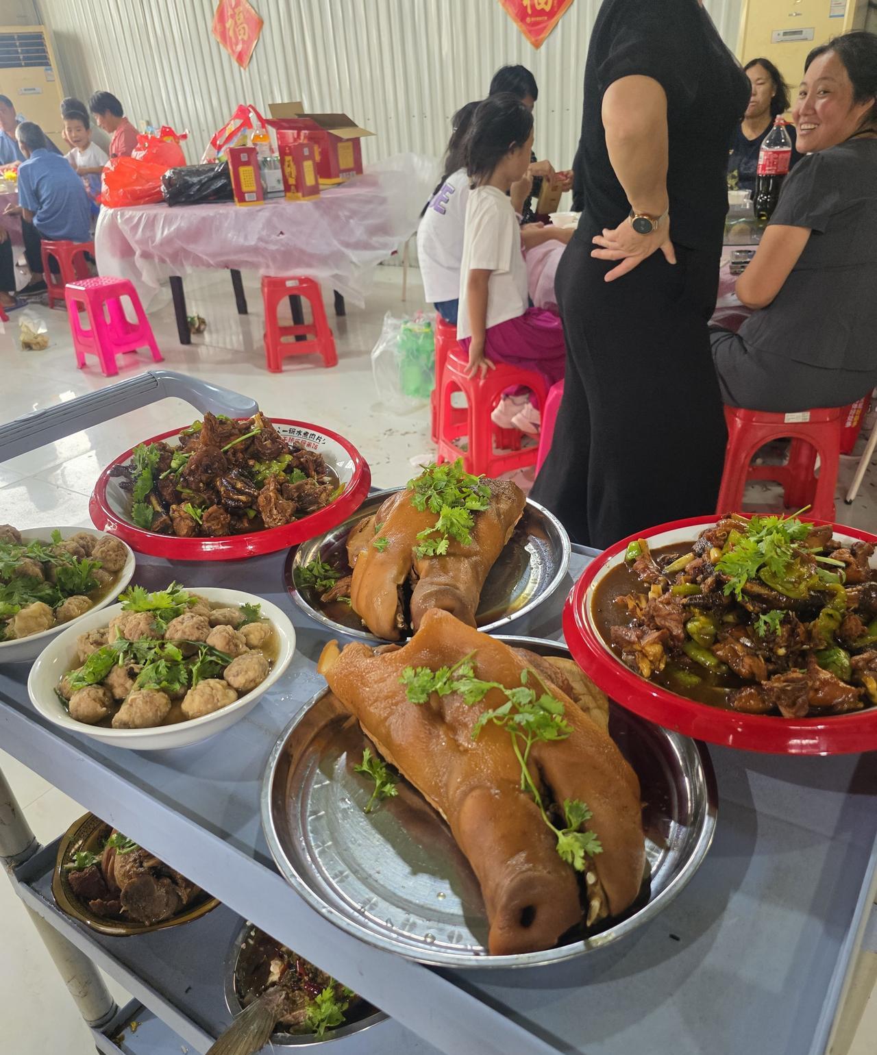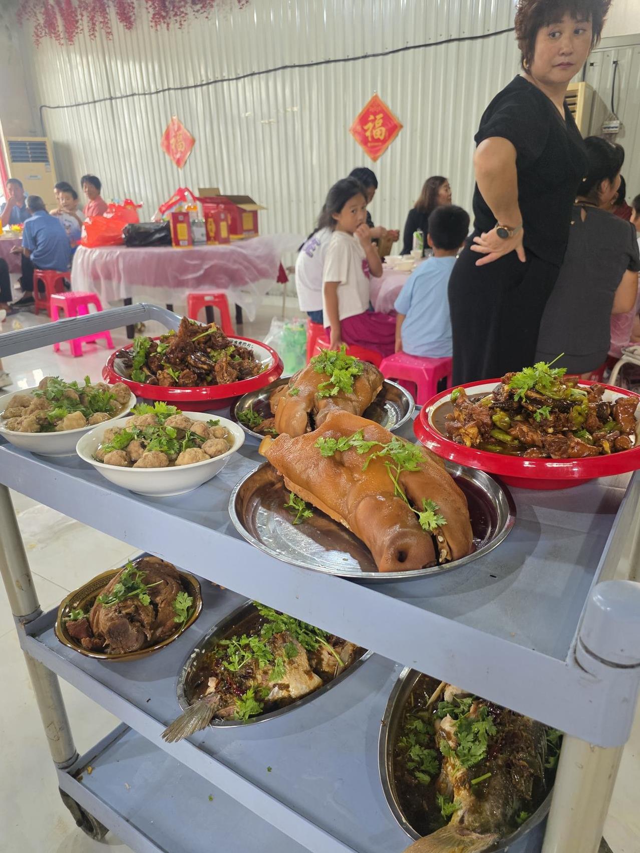 我们这里的农村订婚宴,都有什么菜…… 今天中午到隔壁村饭店订菜,遇到订婚宴,我顺手拍了他们的菜,分享给兄弟姐妹,让大家看看我们这一代,农村订婚宴都有什么菜。 我们这里的宴席,讲究的是鸡鱼肉蛋必须齐全,上菜时也有严格程序,比如头鸡、二鱼、三丸子、四里脊,余下还有八个菜,具体程序记不清楚了。 我们这里上鱼的程序跟其他地方不同,其他地方鱼是最后一道菜,吃席时看到上鱼了,就知道后面没有菜,只有一个汤了。而我们这里,第二道菜必须是鱼,不然吃席的人会笑话。 今天的订婚宴席,硬菜有肘子、辣子鸡、蒜蓉鲤鱼、炸里脊、大虾、豆虫和蚂蚱,青菜若干。通常来说,一桌四个凉菜,十二个热菜,共十六个菜。 十几年前村里吃席,一桌菜所剩无几,现在一桌菜最多吃一半,不过不会浪费,有的人事先准备了塑料袋,等大家吃好了,就打包带回家。