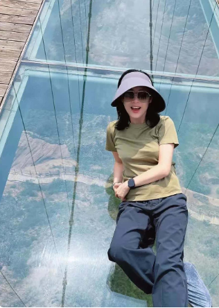 53岁的朱茵现身陕西波浪谷,这画面简直绝了!穿着墨绿色短袖搭黑裤,外套系腰间,S