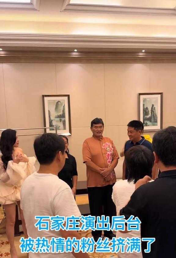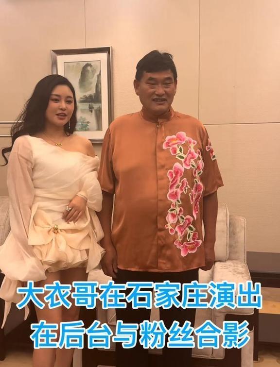 大衣哥河北石家庄演出,身着唐装,大肚腩明显,演出现场座无虚席,还吸引了许多年轻女生找他合影,演出后台,大衣哥一个接一个的和粉丝合影,心里乐开了花,并且还现场教学,真是忙得不亦乐乎,这待遇比那些大明星还厉害