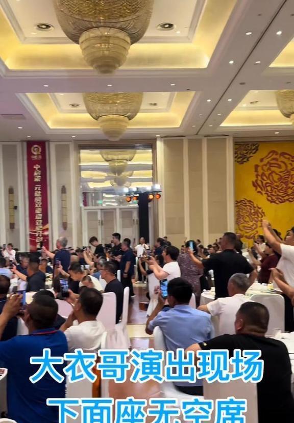 大衣哥河北石家庄演出,身着唐装,大肚腩明显,演出现场座无虚席,还吸引了许多年轻女