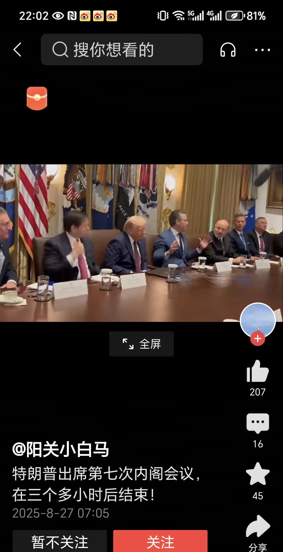 美国第七次内阁会议好轻松 美国总统特朗普召开内阁会议, 从座位上可以看出美国国务卿和国防部长处在比较重要的位置。 他们两位紧紧坐在美国总统特朗普的左右两边, 成为美国总统特朗普的左膀右臂。 然而令人惊奇的是美国副总统万斯却没有出席内阁会议, 不知道是不是副总统不属于内阁成员? 还是副总统万斯有事出差了, 或者请假了。 而且在会议结束之后。 美国总统特朗普还亲切的拍了拍国防部长的肩膀以及商务部长的肩膀, 可以看出他们的关系非常亲密。 从会议气氛上内阁成员不停的吹特朗普总统的彩虹屁 特朗普心情大好 美国人的人情世故很浓啊