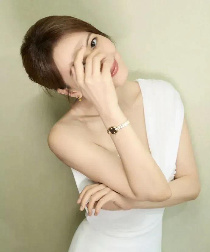 高圆圆一袭单肩白裙,直角肩、精致锁骨太绝,皮肤嫩得能掐出水,托腮甜笑间,性感直接美到窒息!