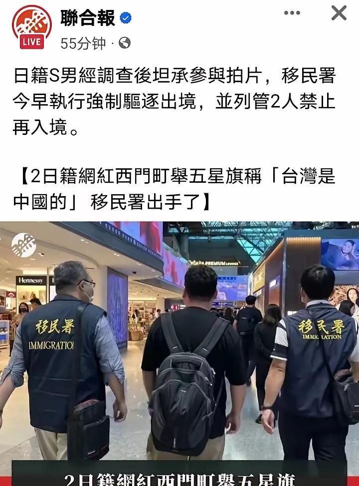 两个日本男人在台湾举五星红旗高喊:台湾是中国的!被台湾移民局驱逐出台湾。 这两个日本人是什么意思?先投降了?