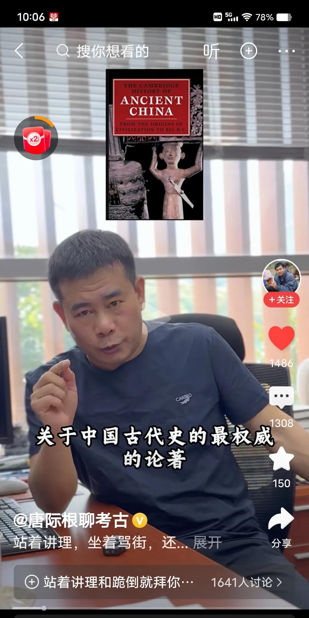 又见唐际根! 自从退出论战后,很久没见唐先生了。今天推来一个他的视频,讲他和普林斯顿大学一个著名教授的论战。 1999年,《剑桥中国上古史》出版,里面没有夏王朝。唐先生看到后非常愤懑,立刻给作者Robert Bagley教授写信进行辩论。 我就想了,这才是真正的学术辩论。考古专家之间的辩论。黄河清教授有过和外国著名教授辩论吗?他应该没这个胆量,恐怕也没这个资格。知识结构学术地位也不够。他老人家也只能在中文网上折跟头。