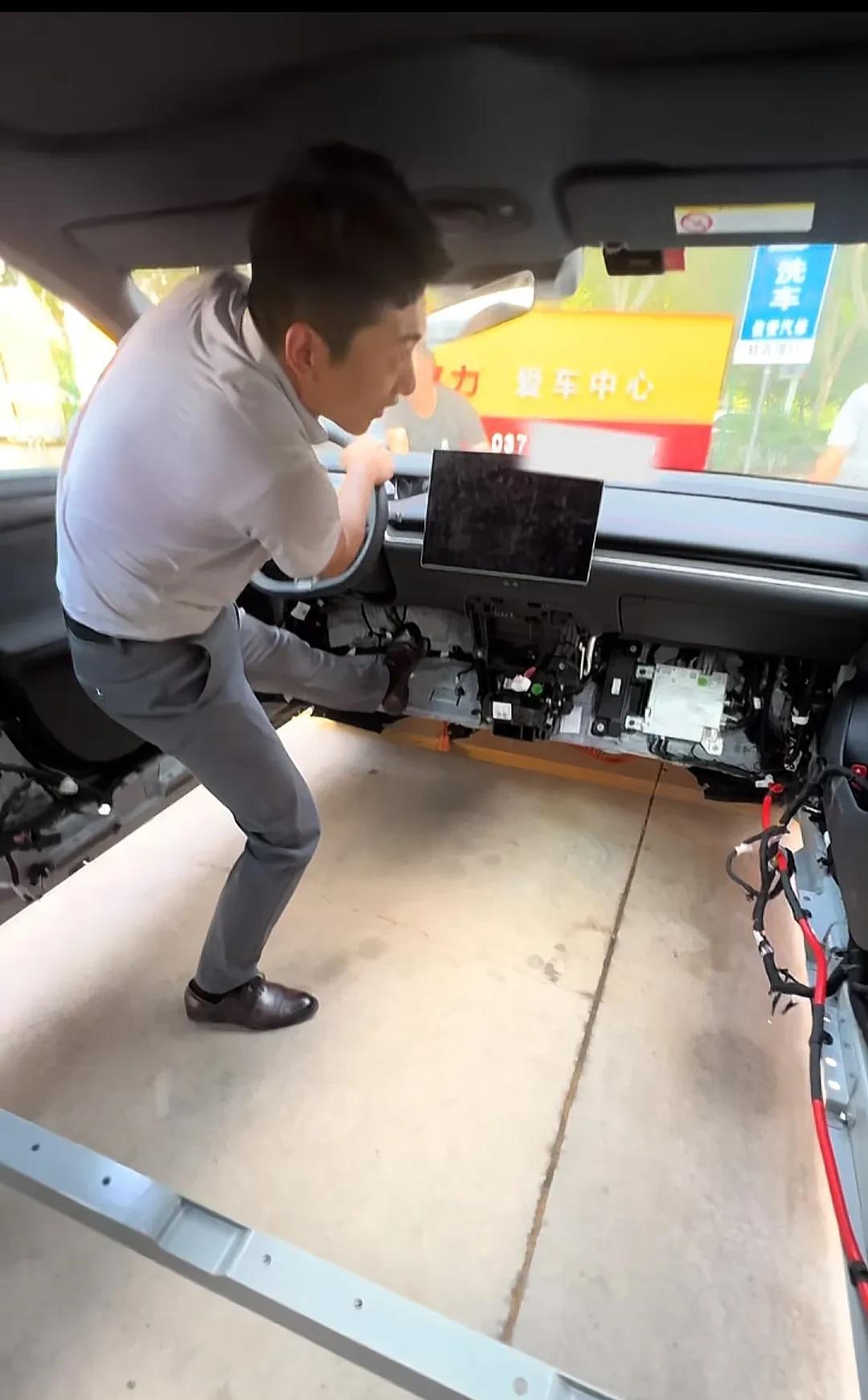 没有电池的新能源车还能走,瞬间刹停你见过吗? 某新能源的电池磕碰坏了,需要更换电池,但即便没有电池也不影响移动,刹停。 如果油车拆成照片中这样那就报废,电动车没事,底盘一大半面积拆掉电池就是空的。果然跟玩具车是一样,区别只是变大了而已。
