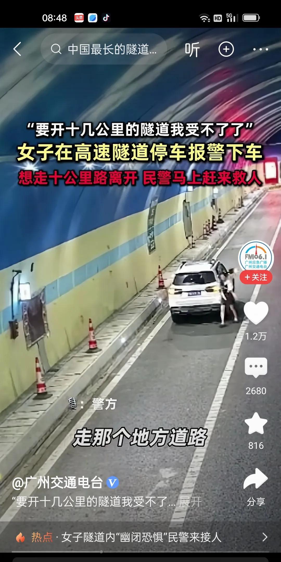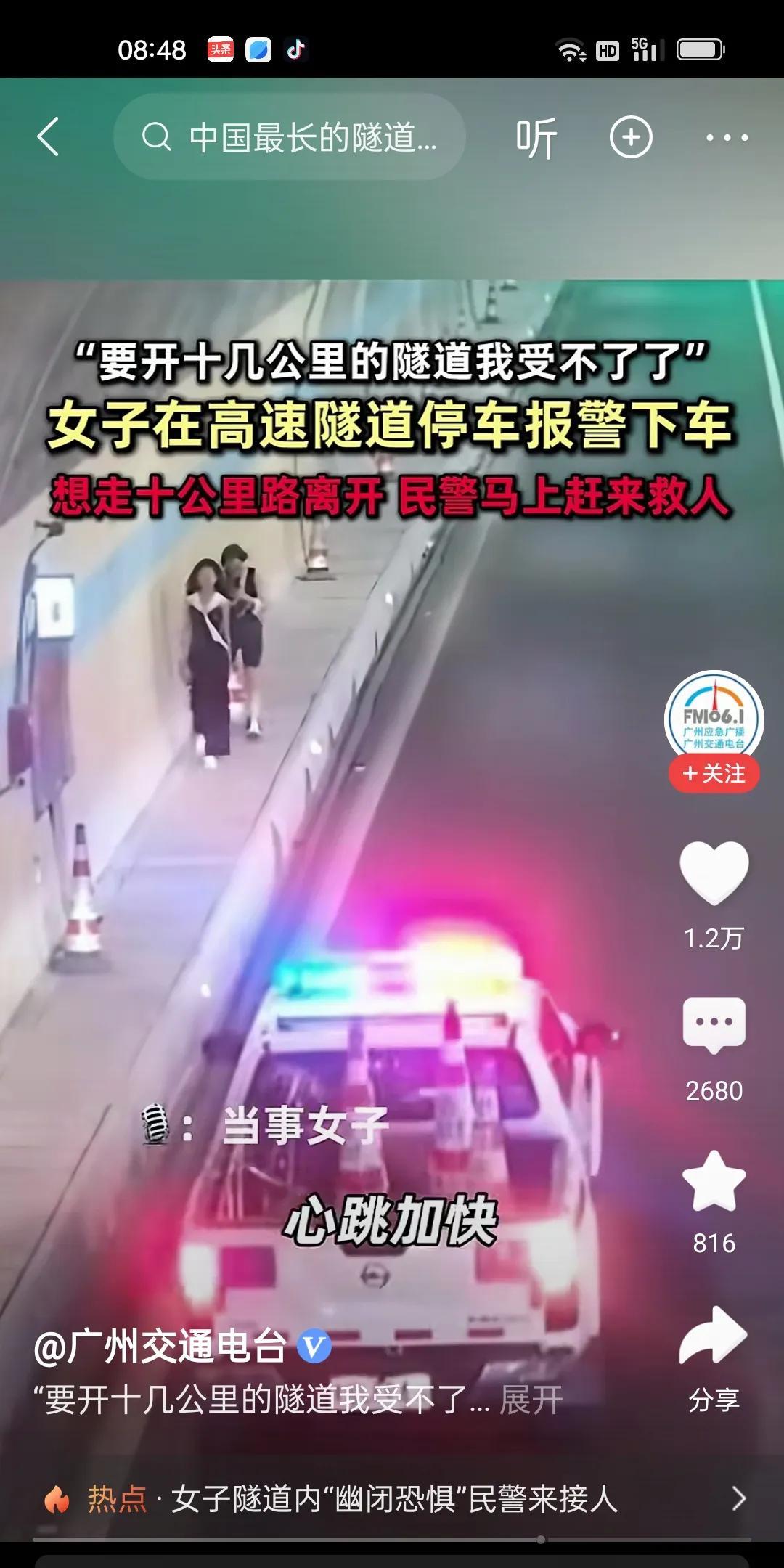 女子在高速隧道开车,心慌手抖腿软,大汗淋漓,估计是有幽闭恐惧症。她知道自己不能再开了,隧道太长了,还有十几公里了。她果断在高速路边停车,打电话报警。民警来了告诉她,下了高速之后,选择国道,不要再走有隧道的高速了。