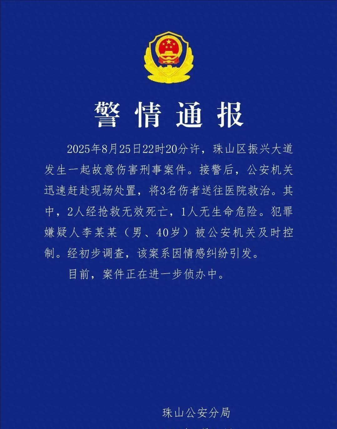 这是事发时的现场视频。 根据当地官方通报,8月25日晚,江西景德镇珠山区,40岁男子李某某因情感纠纷驾车撞人,导致2人死亡、1人受伤。 从现场视频看,李某某在驾车撞倒两人后,曾有多人想试图劝说阻止,但是李某某显然红了眼,发动油门反复碾压倒在地上的两人,有人试图将地上的人拖走,也被李某某撞伤。 冲动是魔鬼,无论发生什么事儿都不可莽撞行事,这至少让四个家庭坠入深渊。