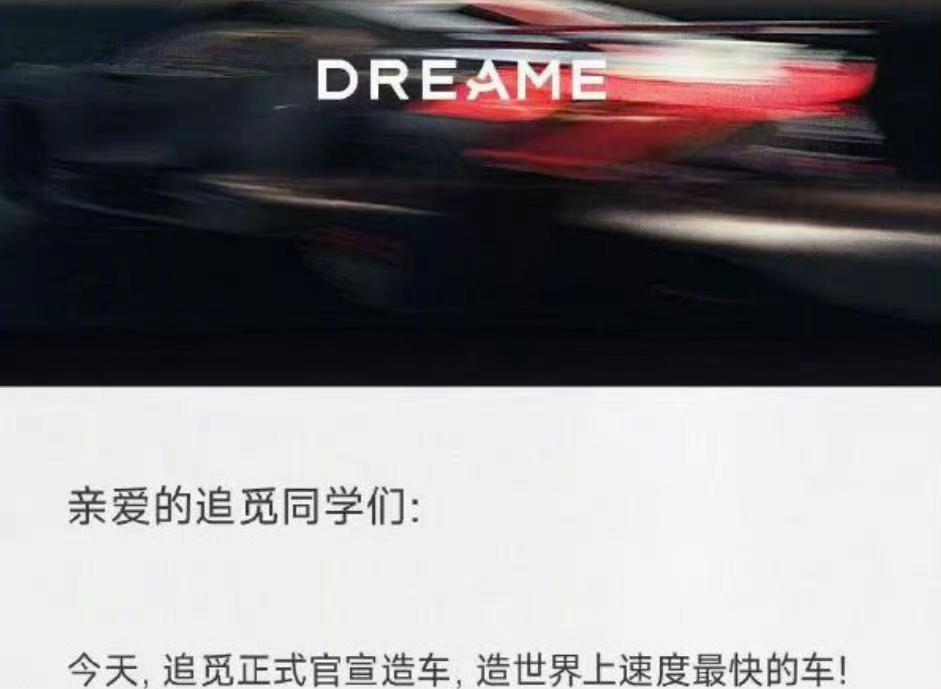 追觅官宣造车,打造中国布加迪威龙。 这事并不奇怪,因为之前就听过。 而了解过俞浩的投资版图的朋友(无人机、机器人、咖啡、电视……),应该也意料到必有造车这一步。(石头此前都整出来了,虽然卖的一般,但证明了可行性) 这里送追觅一个Slogan:追觅,万物皆可造。 结合公开信息聊聊。 ①创始人的野望,2013年清华天空工场时的梦想。 ②有敬畏之心,会依托中国强大的汽车产业链,会跟某车企合作(除非收购,不然现在拿不到资质),会不会牵手华为? ③世界上最快的车,第一款肯定是类似于小米SU7的性能车,赛道基因必不可少。 ④既然官宣,原型车应该已经出来了。 ⑤预测年内会有追觅汽车发布会,明年开售第一台车,主打一个速度。 ⑥汽车会融入自身电机、机器人、传感等层面技术。 追觅汽车,追风少年之选,建议找王一博或韩寒或者代言。【来自懂车帝车友圈】