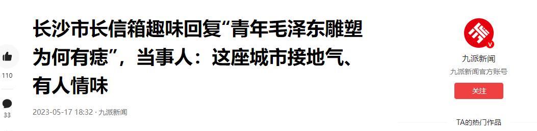 “毛主席40多岁下巴才有痣,青年时期的雕像有痣不妥,应予以去除。”2023年,橘