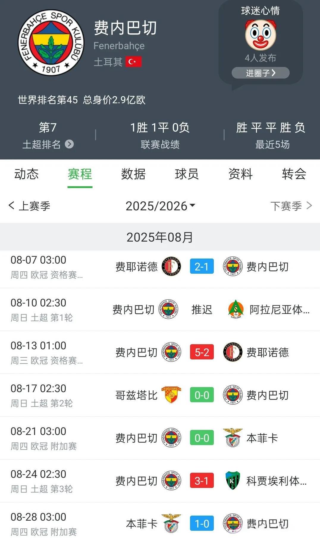 【大胆推测穆里尼奥离下课不远了!】在昨晚的一场欧冠附加赛上穆里尼奥带领的费内巴切