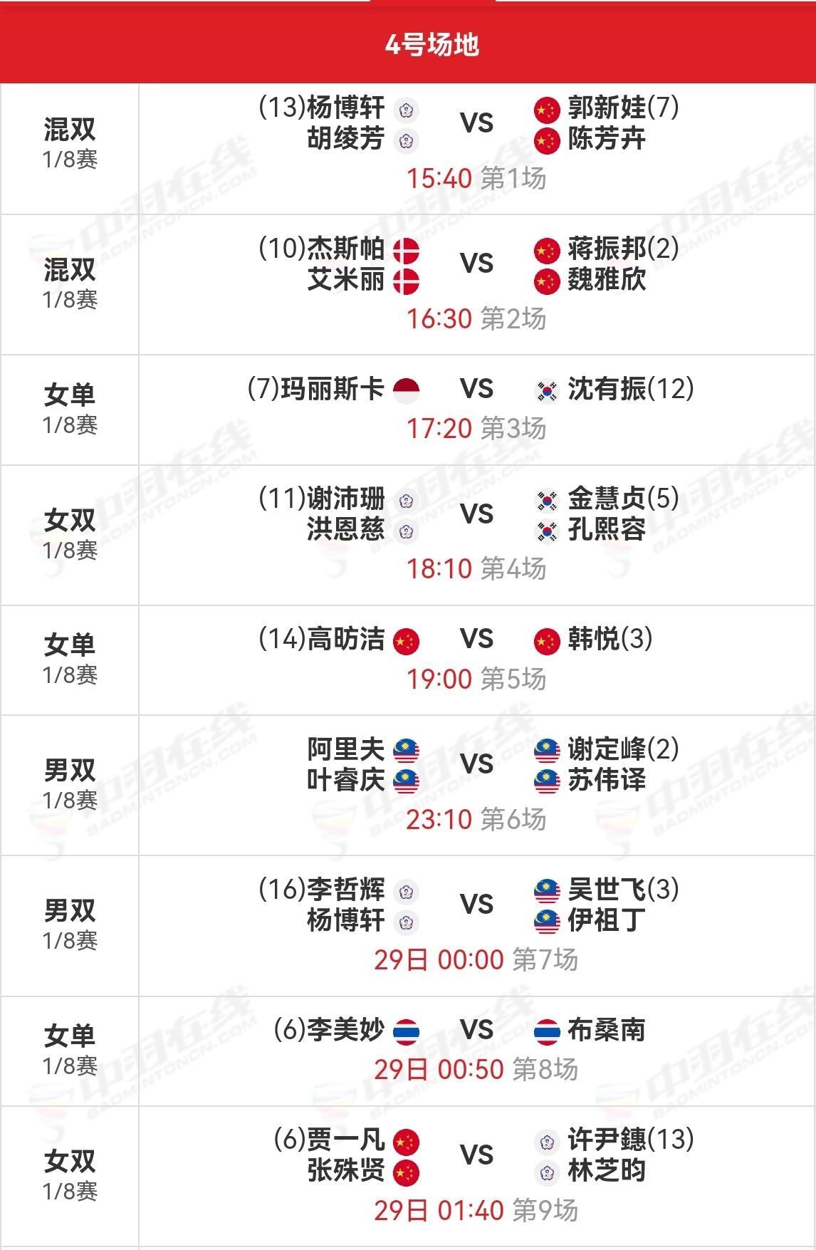 2025年羽毛球世锦赛,27日国羽13战11胜2负,冯彦哲/黄东萍、陆光祖止步。