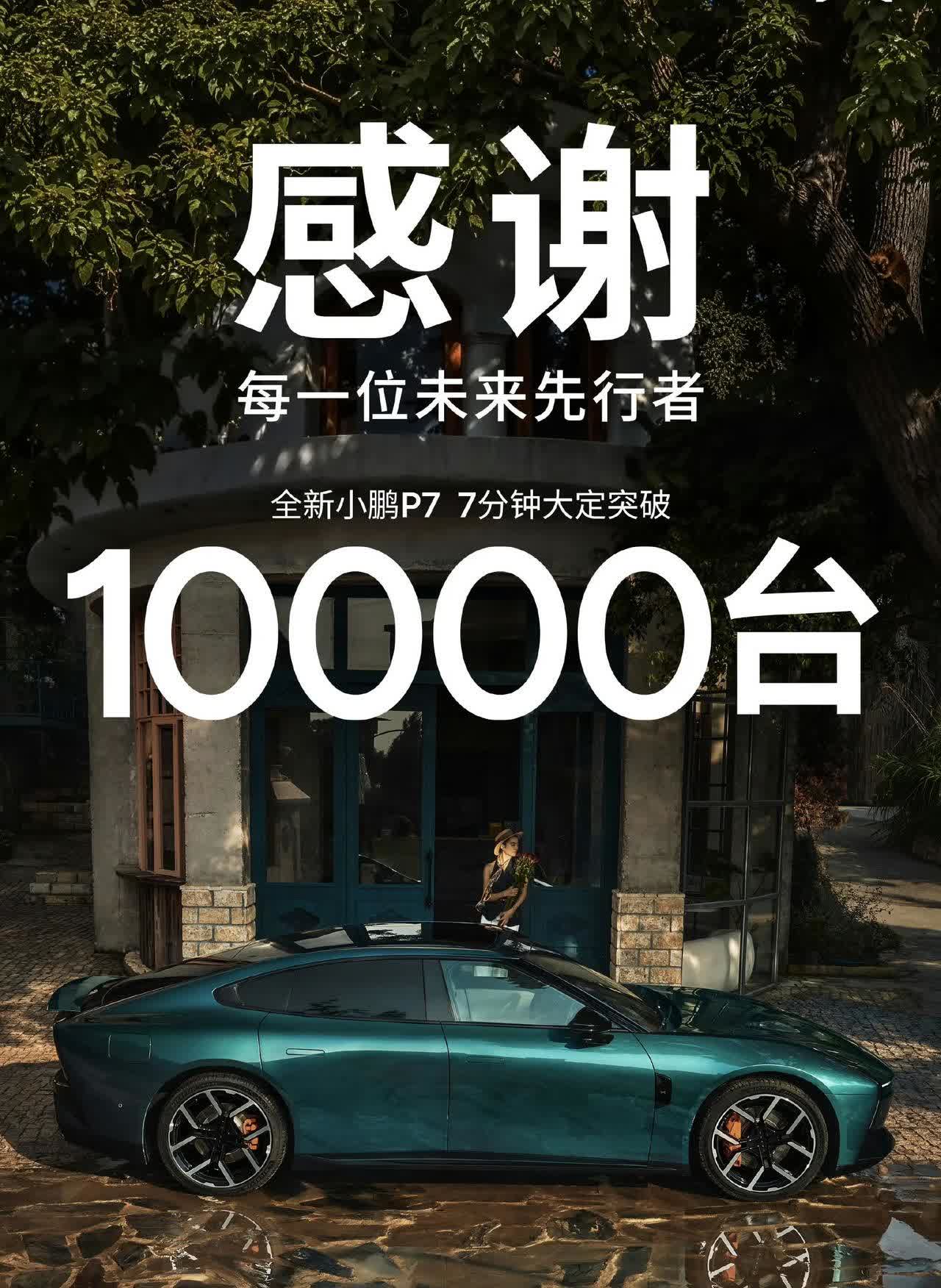 何小鹏发成绩: 7分钟突破10,000单! 其实很多人都猜到了,今天晚上他们这个车肯定会不错,但是没有想到他们仅仅只用7分钟时间就突破了10,000单! 这是什么概念? 现在发布已经过去几个小时了,当你看到这条信息的时候,这个订单已经翻了好几倍了! 这再一次说明了何小鹏,在定价策略上是非常精准的,因为他把入门的版本虽然弄得很低,但是他把那个带剪刀门的版本,弄到了30万出头! 所以之前他在探大家的口风,问大家,如果弄个剪刀门的话,多少钱合适? 很明显,这部分用户,他是不想自己买一个很便宜的剪刀门的,所以用三十多万来起价加上一些复杂的配置,也只不过30小几万,对这部分用户来说,既有情绪价值又有市场价值! 这才是他厉害的地方!