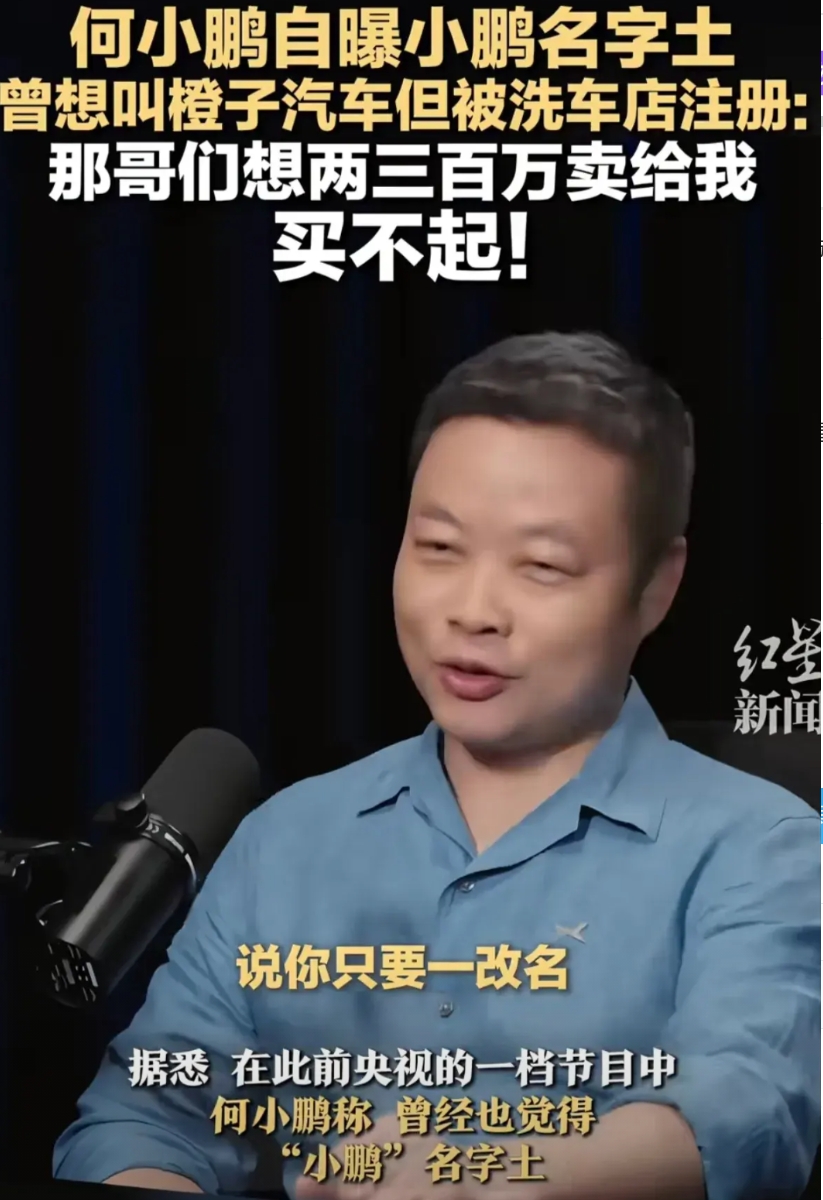 小鹏汽车的成功不是感谢雷军帮助了他,更不是感谢何小鹏本人,应该感谢橙子汽车洗车店老板,要不是洗车店老板当年向何小鹏要300万转让费,有可能不会有小鹏汽车今天的辉煌。 小鹏汽车老板何小鹏在罗永浩播客节目中爆料,最开始小鹏汽车想用“橙子汽车”的商标,可是被一个洗车店注册,对方曾开口索要两三百万的转让费,对于初创的小鹏汽车来说成本过高而放弃,而当时“小鹏”这个名字可以注册,再说何小鹏在互联网行业有一定声誉与人脉,处于创业团队的核心地位,最终公司决定更名为“小鹏汽车” 。 这个名字起的太好了,车企一大堆使用创始人的名字作为汽车品牌,都火起来了,最熟悉的就有奔驰、保时捷、劳斯莱斯、宾利、兰博基尼、布加迪、法拉利、迈凯伦、迈巴赫、道奇、别克、福特、雪佛兰、铃木、雷诺、丰田、本田、标致、雪铁龙、WEY。 小鹏汽车的名字大家最开始觉得怎么样?