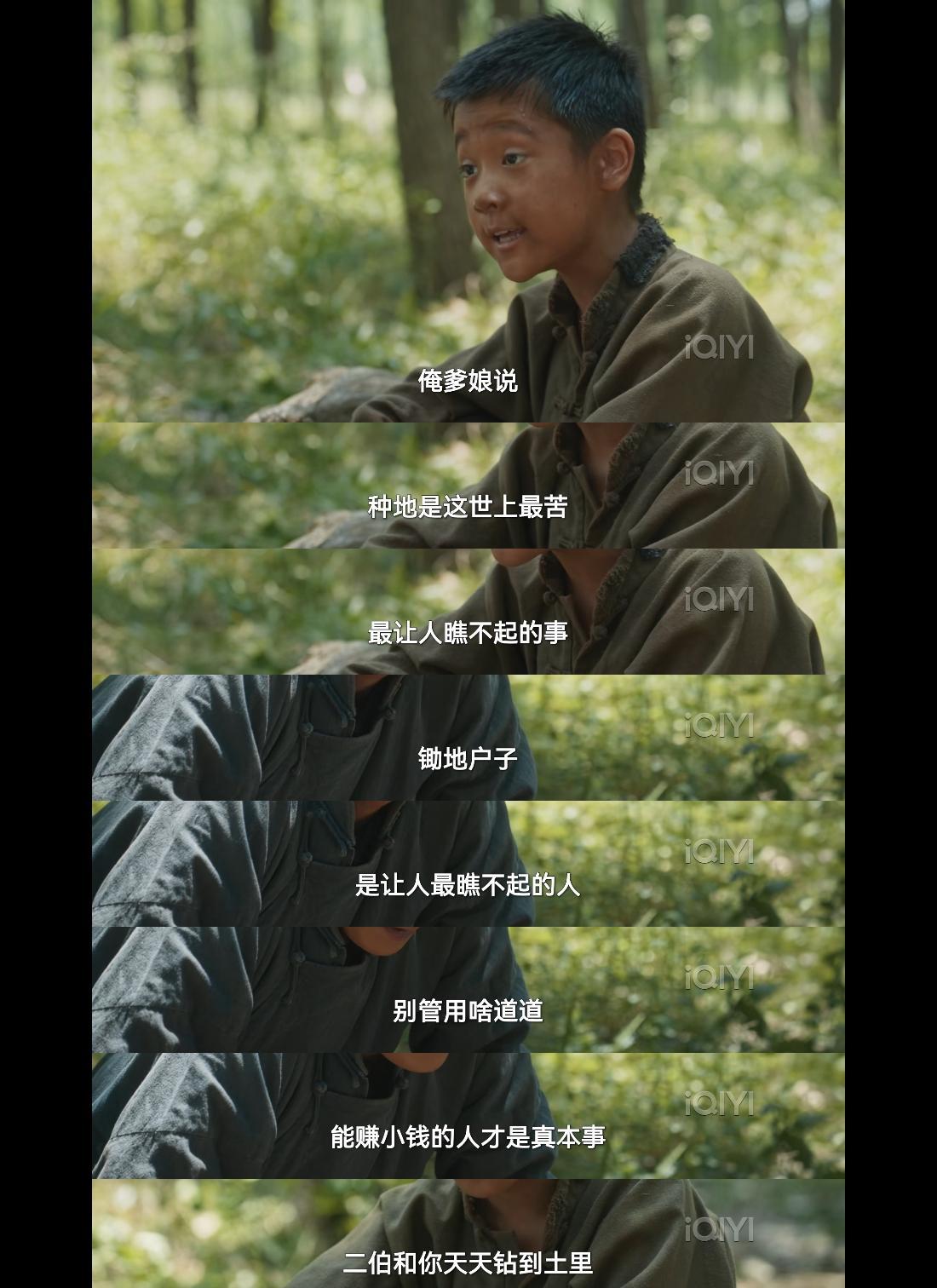 看了《生万物》大结局,才知道封膩味为什么会恨天牛庙村的所有人,包括他二伯封二一家?真是父母害了儿子,害人害己! 封四被马子打死后,大儿子封膩味跑了,老婆和小儿子没味被抓了回来。在宁绣绣的帮忙下,很多人替他们母子俩求情,说他们是无辜的人,要求放了他们! 宁可金也不想为难女人和孩子,便放了他们母子俩。当时封四老婆说,感谢大家,大家都以为她会改变,其实还是那样,要不然也不会被饿死了! 听没味跟封大脚家人的对话,可以看出来很多问题! 片段一:没味在二伯家吃饭,说就是封二家害的他爹他娘都死了,他哥也跑了。就得吃封二家的,吃穷他们家,这是封二家欠他们家的! 片段二:封大脚教没味给麦地浇水,想让他学习如何种地。可没味不愿意,说他不用种地,他要跟他哥一样到处跑。他只是在封大脚家暂时落脚,让大脚不用费心! 片段三:大脚带着没味上山砍柴,没味不想学。大脚说捆柴比砍柴重要,不会捆柴的话,砍了也没有用,拿不回去。 没味问堂哥:为啥要砍柴?他和他娘就不用砍柴。大脚问他们用什么生火?没味说他娘会拿村里人的柴火,这家偷两根,那家偷两根的! 他还说,他爹娘说的:种地是这世界上最苦,最让人瞧不起的事。锄地户子是最让人瞧不起的人!甭管用啥道道,能赚点小钱的人才是真本事…… 从这些细节可以看出来,封四和他老婆本身就有很多问题。 首先,两人本身就是锄地户子,却从内心看不上锄地户子,觉得种地辛苦,还让人瞧不起。 为此,他们不想着怎样好好种地,净想着旁门左道。比如赌,当马子打家劫舍,来钱快。 这样说来,封四当马子,带马子进村踩盘子,他老婆应该都是知道的。说不定还配合呢!要不然没味不会说是封二家害死了他爹他娘! 当初没味还小,这些都是他娘教他的。是封二害死了封四,封二欠他们家的。 其次,两口子好吃懒做,不会过日子。一直都有小偷小摸的习惯!没钱了就找宁学祥借,有了就大吃大喝,没钱还就躲。 人家来拿地抵债时,就开始装可怜,博同情。可宁学祥不吃这一套,他是宁老抠啊!再说四年多了,也该还了!人家来硬的,他们家恨人家。 自己不去砍柴,就偷邻居家的柴火。有时候估计还偷别人家的菜,或者粮食呢!时间长了,邻居们肯定有意见,肯定会骂骂咧咧的。对封四家的人自然也不会和颜悦色的! 封膩味就是在这种被人看不起,被人嫌弃的环境下长大的,他自然恨村里人。 没有人教他明辨是非,他自然就觉得父母说的对,都是别人的错。为此,他要报复所有人! 没味在绣绣和大脚的教育下,就很不一样。教他种地,教他生存的技能,还教他读书识字、明事理。 他踏实种地,靠自己的劳力生存,不偷不抢,很踏实。随着年龄的增长,他也越来越觉得父母当年做错了! 他知道了哥哥也做错了,才会大义灭亲,让大脚他们来抓封膩味! 孩子品行如何,跟父母有很大的关系。榜样的力量! 遇到封四夫妻这样的父母,其实最可怜的还是孩子。他们从小生活苦,被人嫌弃,最后养成仇视身边人的心理,他们恨! 封膩味是父母养大的,他的品行就特别像父母。封没味是大脚夫妻养大的,他就像哥嫂。 #生万物剧评# #生万物演技对比# #生万物# (图片素材来自网络,侵删)