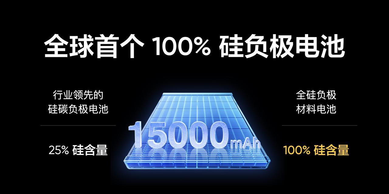 15000mAh概念机,真我真的想把电池给拉满呀,100%硅负极电池也是真狠,直接坐到1200Wh/L能量密度。