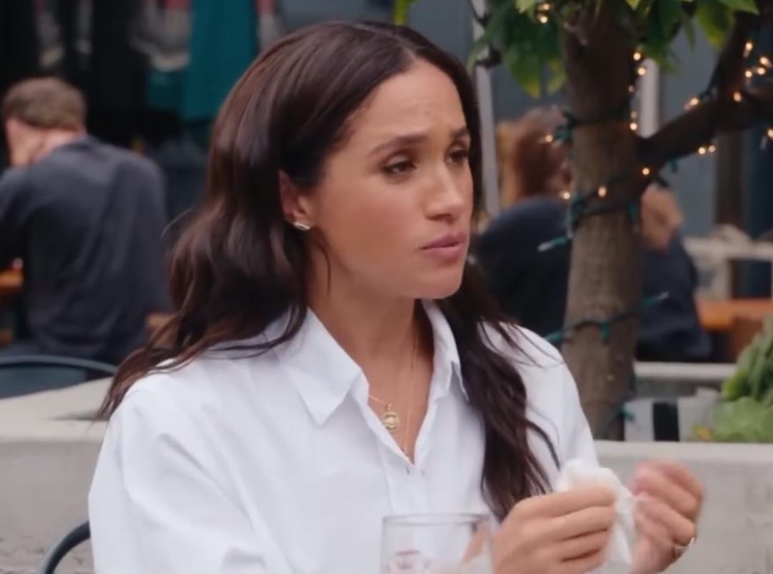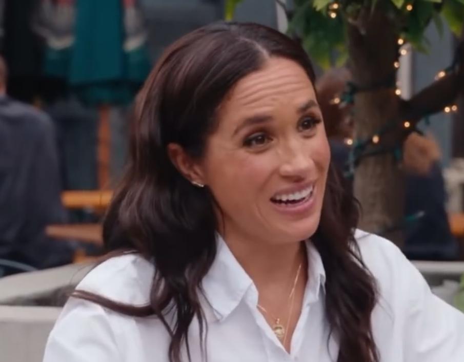 苏塞克斯公爵夫人梅根在节目中,表情夸张而又丰富,使劲挥动自己的双手。 梅根和凯瑟