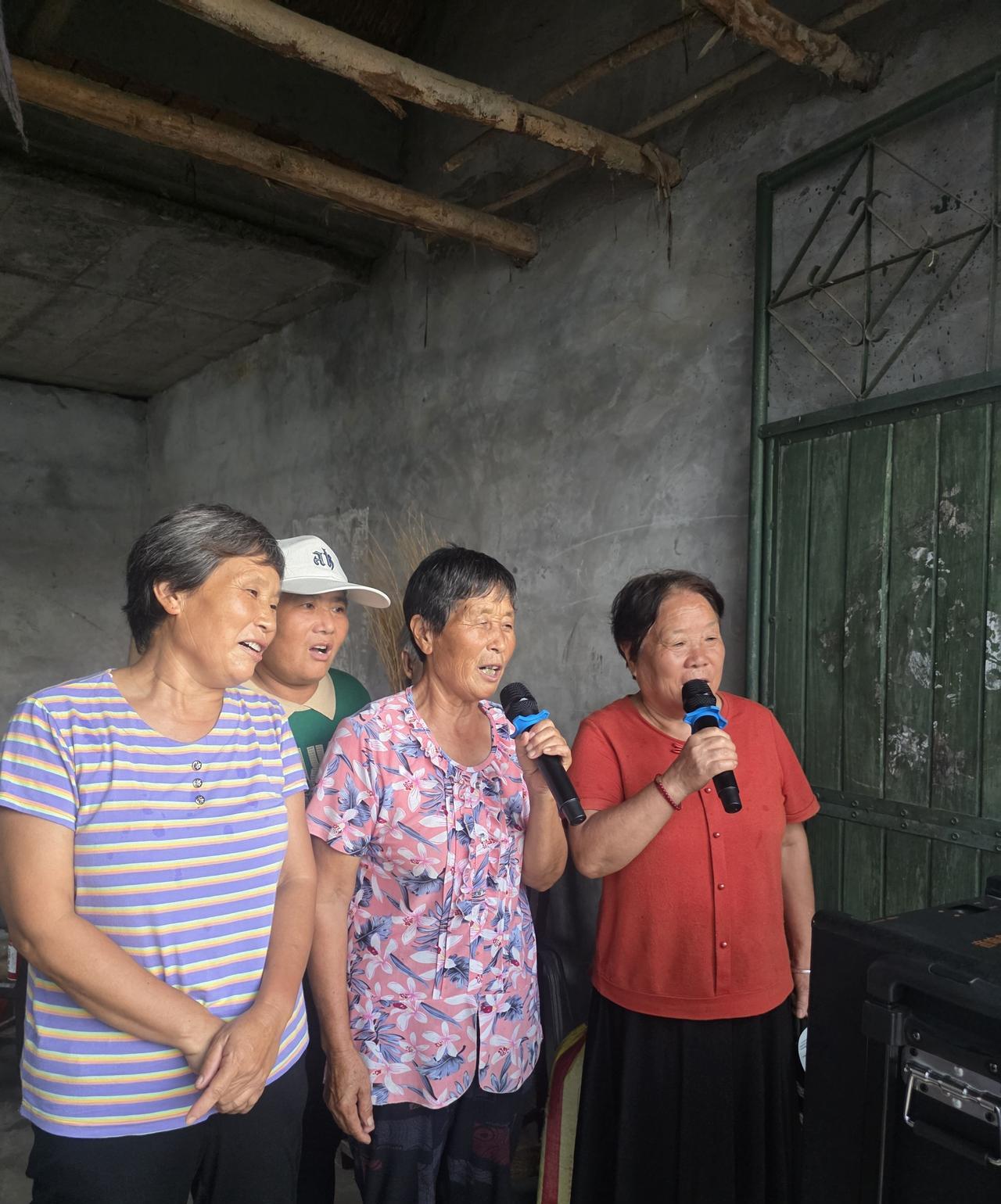 突如其来,赶紧转移,老太太跑得也挺快…… 下午镇文化站的兄弟给我信息,说再过来玩玩。三点钟我带着茶、点心和水果来到这个场地等他,不一会儿他就到了。 婶子炒了花生米,洗了水果,沏了茶。兄弟带来了有显示屏的专业音响,上至八十多岁婶子,下至六十岁嫂子,大家热情洋溢地捧起话筒唱起来,真是欢天喜地。 正嗨着,滂沱大雨突如其来,大家抓紧转移阵地,就近跑进大姑的过道和柴房,支起音响继续唱。户外大雨倾盆,柴房歌声嘹亮,雨声歌声交织。 虽然下着大雨,但情绪不受影响,人人兴高采烈,唱了一首又一首。 看到父老乡亲如此高兴,我自然也高兴,但心里一阵阵发酸——有很浓烈的无力感。乡亲们有如此高涨的娱乐热情,但限于条件,没有条件,没有设施,满腔热情和高昂兴致,得不到释放,可我没有能力改变。